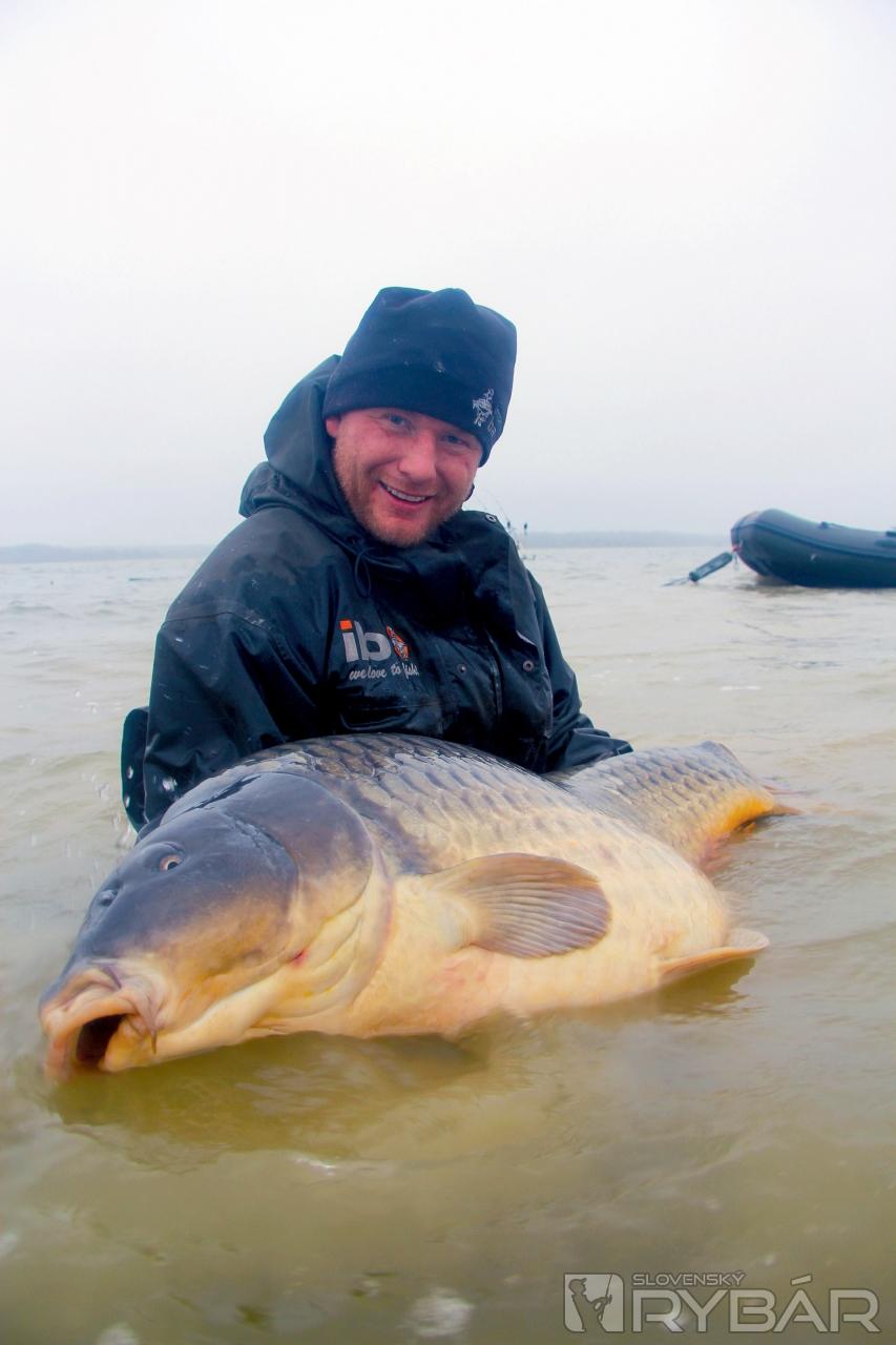 Po ceste sa ma zhostili veľké emócie a musel som si niekoľkokrát silno zakričať. To už bolo Jardovi na brehu jasné, že to konečne prišlo. Vedľa nás chytal Viliam Štrba a Zsolt Bundik, ktorí už s Jardom čakali na brehu. Pomohli nám rybu zvážiť a zdokumentovať, za čo by som im chcel poďakovať. Ručička váhy sa zastavila tesne pod hranicou 36 kg! Všetci sme sa zhodli na hmotnosti 35,8 kg. Rýchlo sme rybu zdokumentovali aj keď pršalo. Fotenie a natáčanie sa odohrávalo celý čas vo vode, aby sa tomuto klenotu európskych zväzových vôd nič nestalo. Po pár minútach sa vrátil do svojho domova a ja som nemohol od radosti ani hovoriť. Chcel by som poďakovať všetkým kamarátom, a hlavne svojej rodine za ten nádherný sen, ktorý sa mi splnil pri prekrásnom obrovskom jazere.
