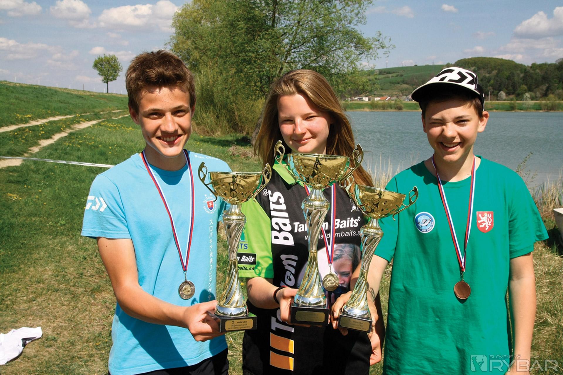 Najúspešnejšia trojica do 14 rokov. Zľava Samuel Baranovič, Soňa Predná a Jan Nový.