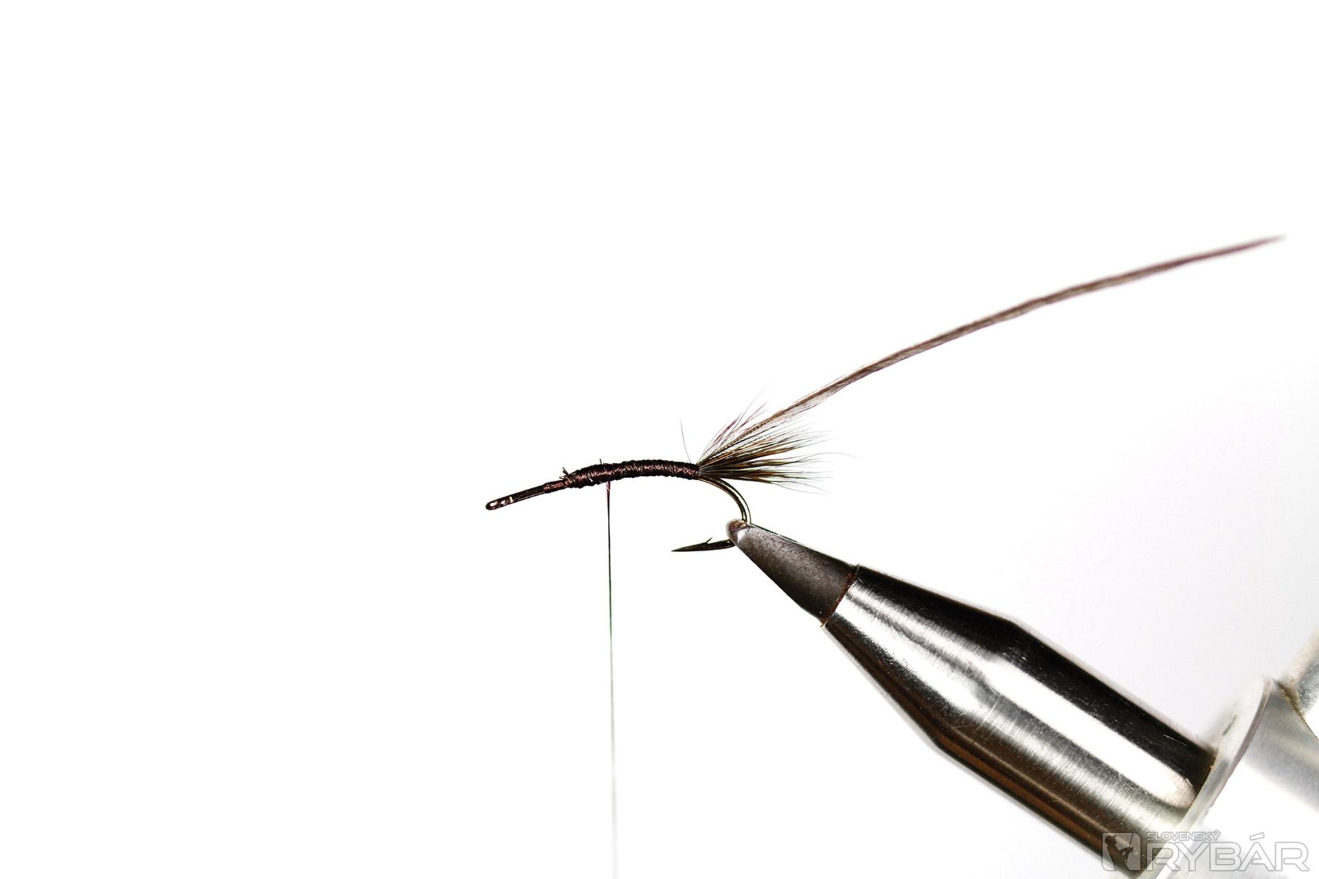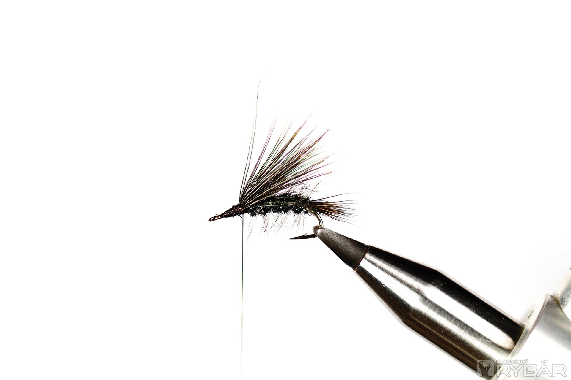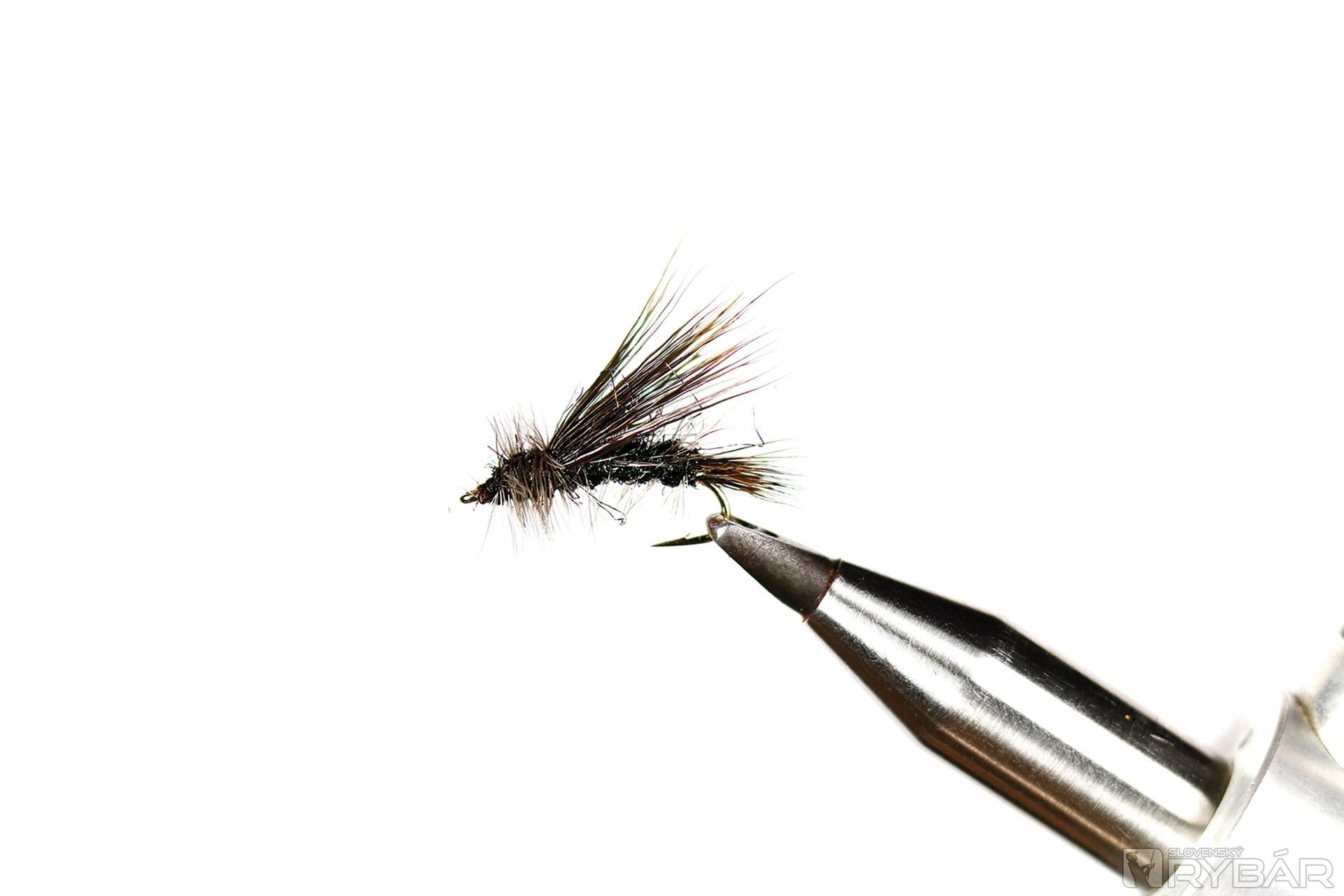 Vzor suchej mušky, ktorý imituje dospelého jedinca pošvatky, alebo potočníka. Muška veľmi dobre pláva. Je dôležité zachovať jej proporcie, inak je to jednoduchý vzor na viazanie. Používame v rýchlejších prúdoch. Na tento konkrétny vzor som zvolil tmavé farby materiálov, je dobrý aj do čistej vody. Na viazanie používame špeciálny tvar háčika, ale pokojne môžeme viazať aj na klasický s predĺženým ramienkom. Lovíme s jednou muškou na nadväzci.