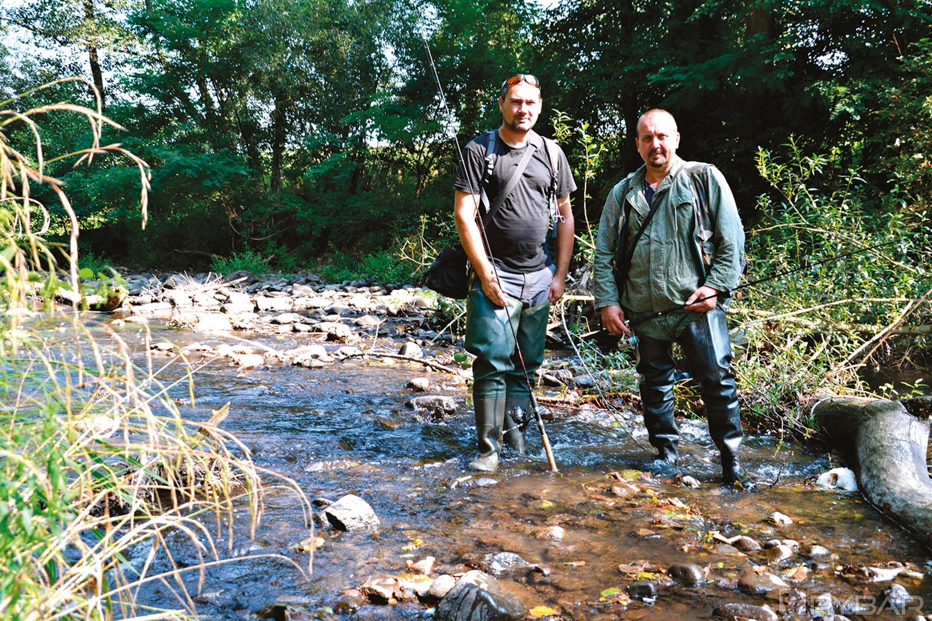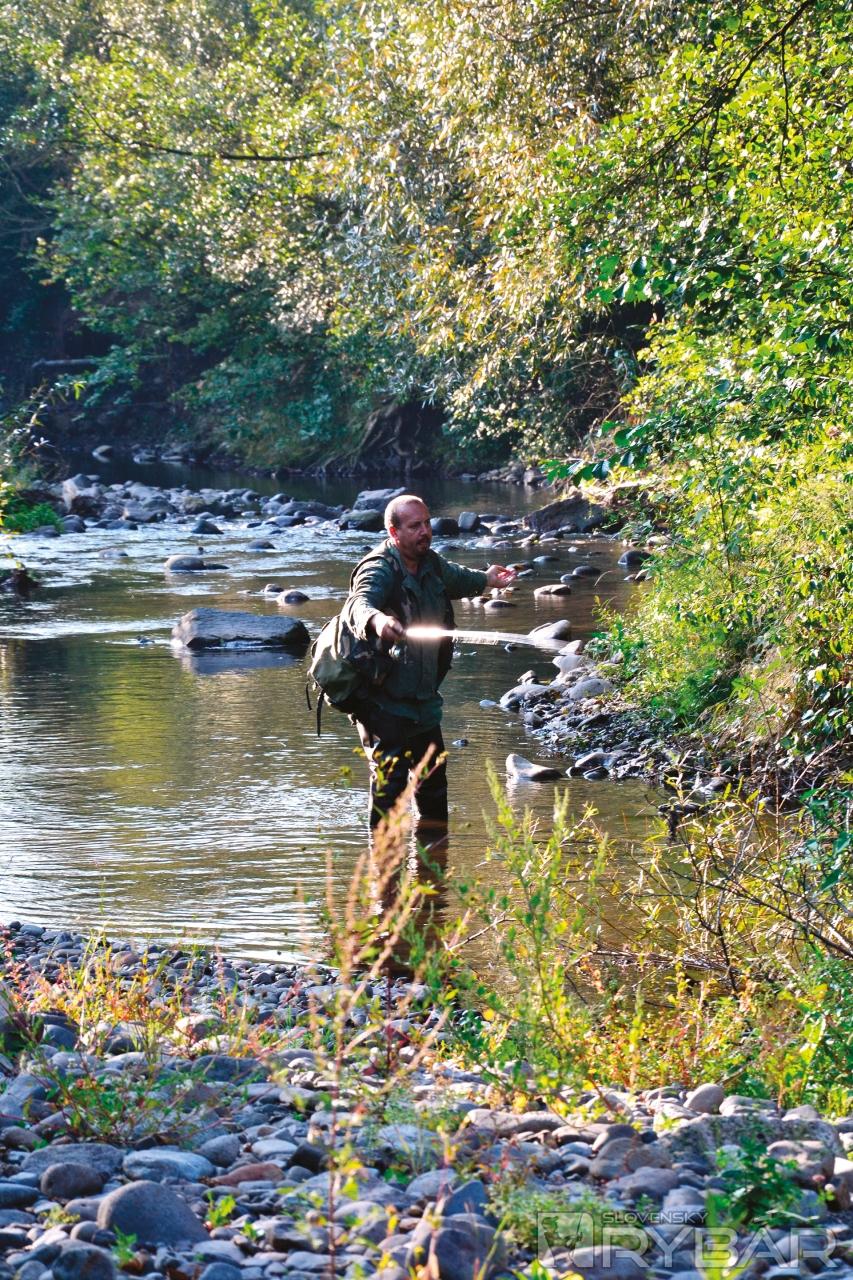 Jednu z ďalších vychádzok som absolvoval so známym – Ľubom, ktorý sa po dlhšom čase vrátil späť do mesta. V minulosti bol práve on rybárskym hospodárom na pstruhových vodách našej MO, opisovaný neutešený stav nastal po jeho odchode. Na rybačku sme si vybrali dolný úsek potoka, kde sa nachádzajú veľké hlbočiny, potok tu na niektorých miestach vytvára dokonca menšiu deltu s viacerými prietočnými ramenami. Keďže mal byť ďalší teplý deň, k vode sme vyrazili ráno okolo 7.30. Zostavili sme si prúty, pripli blyskáče a vydali sa skúsiť šťastie. Ja som si v tento deň zvolil skôr úlohu sprievodcu a fotografa, Ľubo bol model a asistent pri fotení. Hneď na prvej hlbočine sme ulovili dve menšie ryby a jedného pekného potočáka. Popri rybačke sme rozoberali aké to bolo pri vode kedysi a aké je to dnes, čo by sa dalo spraviť lepšie. Na rad prišli témy obmedzenia počtu vydaných povolení na pstruhové vody a, samozrejme, množstvo privlastnených rýb na povolenie. Pomaly sme sa presúvali vyššie proti prúdu, ryby sa ukazovali na každom sľubnejšom mieste, len zriedkavo neprišiel po nahodení nástrahy záber. Ľubo nakoniec ulovil ešte jedného potočáka presahujúceho 30 cm a zamrzeli ho dve spadnuté ryby okolo 35 cm. Jednu som mal možnosť vidieť v priamom prenose: Ľubo, prikrčený pri nádejnom mieste, pomaly rozkýval nástrahu a jemne ju položil ku koreňom jelše, kde predpokladal stanovište pstruha. Ten tam aj bol, na nástrahu zareagoval v zlomku sekundy, a tak agresívne, až Ľubo zabudol zaseknúť. Pstruh sa pri efektnom výskoku elegantne zbavil meppsky a trieli pod korene. Tak to na rybách býva, aj ryba má šancu a tá najväčšia vždy ujde. Prešli sme pomaly približne 1,5 km toku a pri veľkej jame sme si povedali, že na dnes stačilo. Deň sa vydaril, na konci sezóny sme opäť dokázali uloviť aj pekné ryby. Je dobre, že pstruhy v takomto množstve zostanú v potoku do budúceho roka, v jeseni dajú život ďalšej generácií potočákov. Pstruhové vody vyžadujú veľa starostlivosti hlavne preto, že tento biotop je nesmierne citlivý. Stačí jeden hrubý zásah a môže prísť ku katastrofe, ktorej následky sa budú odstraňovať niekoľko rokov. Pstruh je krátkovekou rybou, aj krátky výpadok v zarybňovaní sa rýchlo prejaví na stave populácie. Naopak, vybudovanie zdravej a životaschopnej populácie trvá aspoň tri roky, tu sa nedajú robiť zázraky z roka na rok. Preto je dobré, že ešte existujú ľudia, ktorí ochotne pomôžu pri roznášaní násady, budovaní kaskád a celkovej starostlivosti o revír. V dnešnej uponáhľanej dobe, keď nikto nemá na nič čas je to taký menší zázrak a za to im patrí poďakovanie. Odmena za starostlivosť prichádza potom v podobe pekných úlovkov.