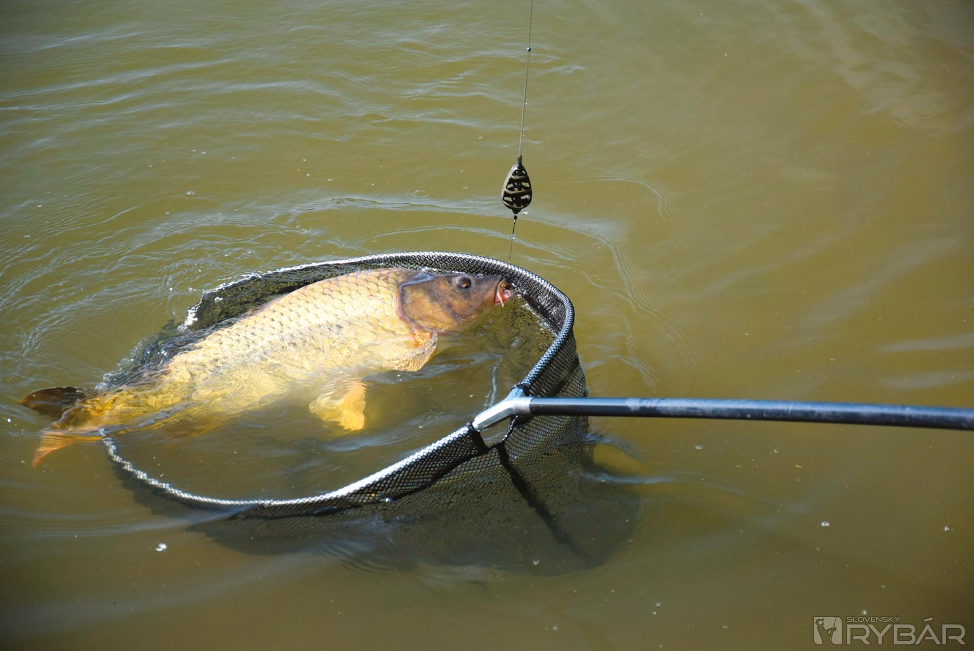 Method kŕmidlo má tendenciu sa zaboriť do bahna, a tak som koncovú montáž vždy po dopade na dno jazera opatrne potiahol po dne, aby som mal istotu, že kŕmidlo leží na bahne a moja nástraha je aj tak plávajúca. Tá sa tak pekne vznáša aj s háčikom presne nad krmivom a čaká na prvú rybu, ktorá sa ulakomí na maškrtu a môžem vám prezradiť, že som nemusel dlho čakať na prvý záber. Aróma, ktorú som nastriekal na naplnené kŕmidlo s nástrahou účinkuje okamžite, posiela silný potravinový signál rybám, ktoré na to reagujú dosť rýchlo. Za posledné dva týždne som bol päťkrát na trojhodinovej rybačke a skoro vždy som chytal na inom mieste a iba raz som zaznamenal slabú aktivitu rýb. Obvykle som zdolával kapry od 50 do 60 centimetrov, ale občas ma navštívili aj kapry cez 10 kg a pár amurov, ktoré mali asi 70 centimetrov. Každú rybu som ukladal do podložky a aj menším rybám som pomocou Baktostopu dezinfikoval ranku po vpichu háčika. Tento môj článok bol trocha odlišný od tých, ktoré som zvykol písať, ale dúfam, že som vám vedel dať aj takéto užitočné informácie. Prajem vám úspešné krátke rybačky.
