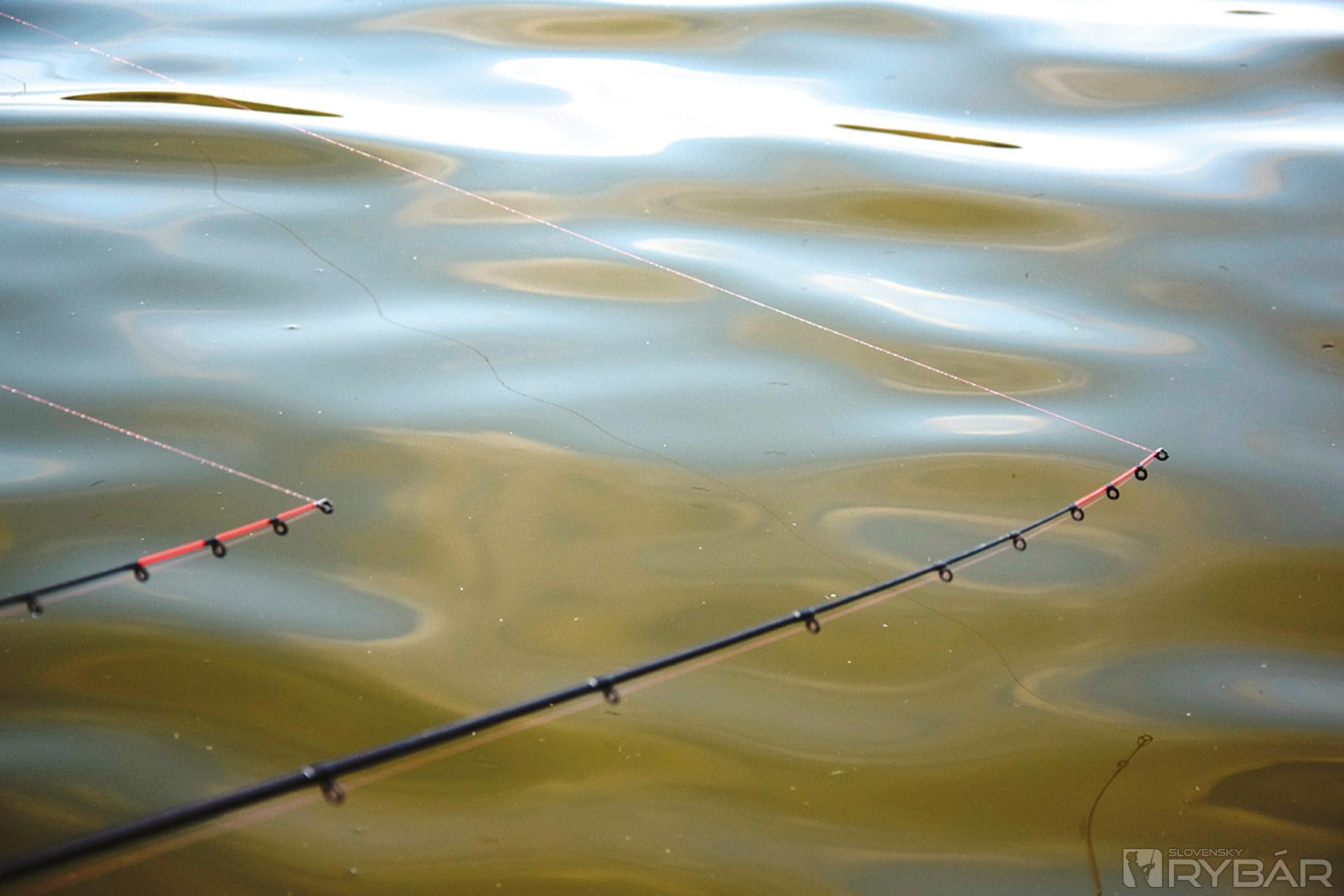 Na toto jazero chodí dosť veľa rybárov na viacdňové rybačky a títo rybári zvyknú z člna zakrmovať v strede jazera a svoje koncové montáže zavážajú. Tomu som sa musel prispôsobiť a zobral som si so sebou 420 centimetrov dlhé feedrové prúty, aby som vedel nahodiť do blízkosti stredu jazera. Aby moja koncová montáž letela čo najďalej a najpresnejšie, použil som method kŕmidlo so stabilizačnou tyčkou. Tá plastová tyčka slúži na to, aby sa kŕmidlo počas letu nekývalo, držalo svoj smer aj vtedy, ak by fúkal vietor.