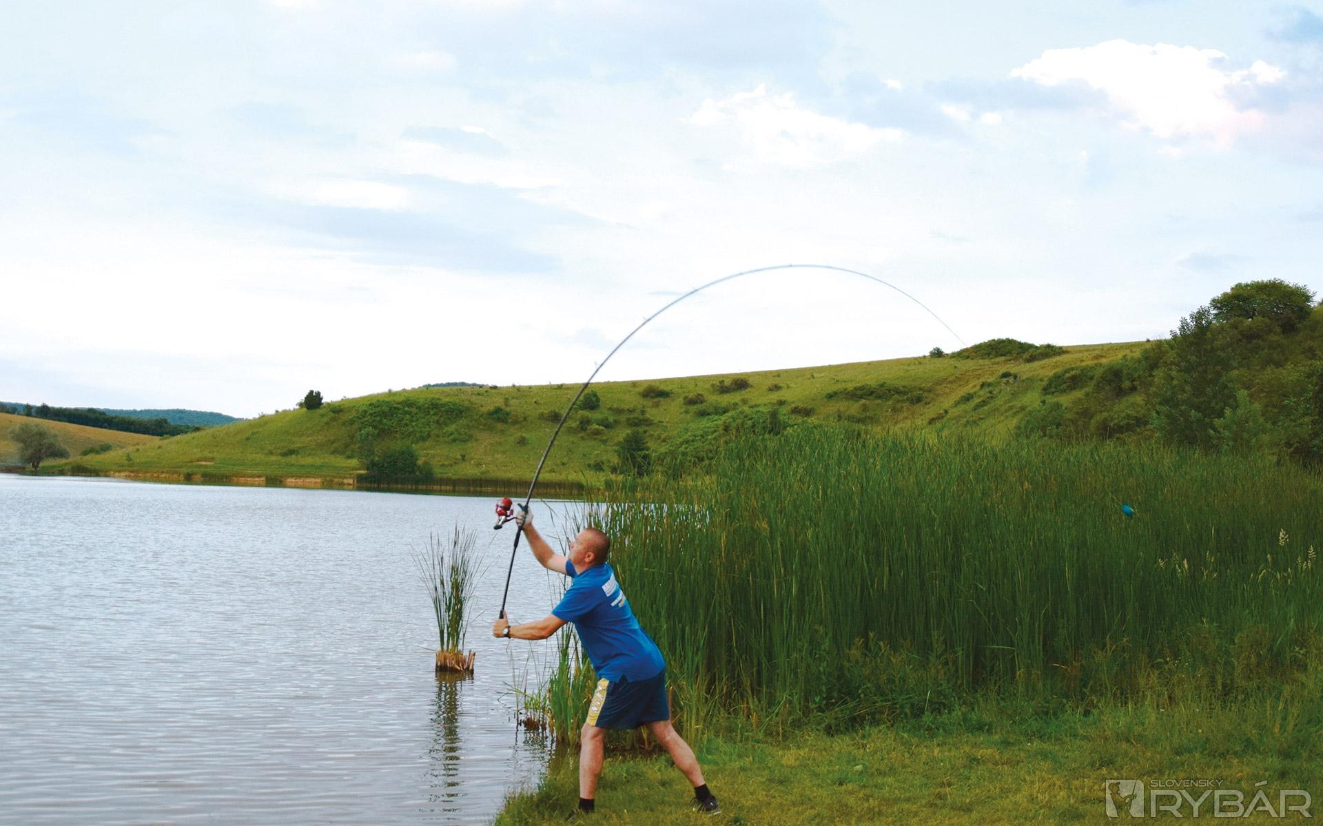 Pár riadkov by som napísal aj o presnom nahadzovaní do diaľky. Aby som vždy nahadzoval do rovnakej vzdialenosti, tak som koncovú montáž nahodil čo najďalej a vyšponoval som vlasec, následne ho zaklipoval do kovového klipu, ktorý sa nachádza na cievke navijaka a potom som svoju koncovú montáž vytiahol, na nástrahový osteň som nastražil jednu malú method peletku, spolu s háčikom som ju vložil do plničky, zasypal to krmivom a následne kŕmidlo pritlačil miernou silou do plničky. Takto som mal dokonale naplnené kŕmidlo s nástrahou v strede. Postriekal som to všetko Method Sprayom a pripravil sa na nahadzovanie. Dal som do toho všetku silu a švihol. Počas letu kŕmidla som prút prudko potiahol dozadu, aby špička smerovala k nebu. Prečo som to spravil? Vlasec som mal stále zaklipovaný, aby montáž dopadla do tej istej vzdialenosti ako pri prvom nahodení. Tým, že špička prúta smeruje hore, tak tlmí náraz kŕmidla o vodnú hladinu, a tak sa nikdy nemôže stať, že sa kmeňový vlasec pretrhne.