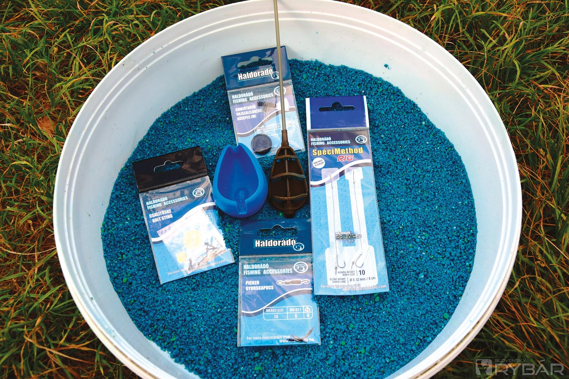 K tomuto method kŕmidlu je pribalená aj nová silikónová plnička, pomocou ktorej sa dá kŕmidlo naplniť krmivom, a tak vznikne koncová montáž, ktorá má aerodynamický tvar a dobré letové vlastnosti. Pri týchto svojich trojhodinových rybačkách som vôbec nezakrmoval, iba som naplnil kŕmidlo fluo krmivom a to celé som poriadne postriekal tekutou arómou s názvom Method Spray. Nástrahy som používal malé, ale výrazné svojimi farbami, rôznymi vôňami a príchuťami. Tieto nástrahy sa volajú Method pelety a sú to plávajúce nástrahy určené práve na tento štýl lovu.