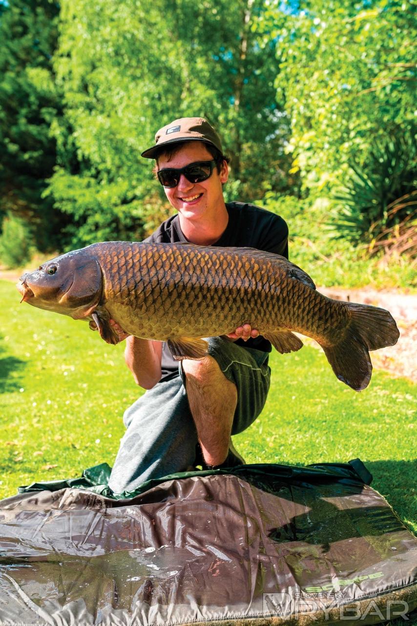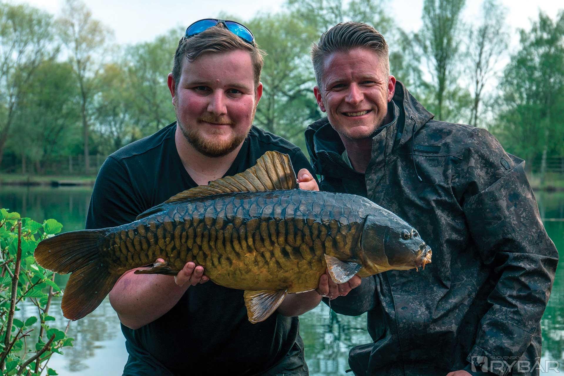 Kým som sa hrabal v prázdnom vrecku, začul som zvuk kolies na štrku. Dorazili Carl a Alex. Potriasli sme si rukami, pripravili fotoaparáty a mohli sme uloveného kapra fotiť. Po fotkách sme kapra rýchlo pustili späť do vody. Bol som prešťastný!