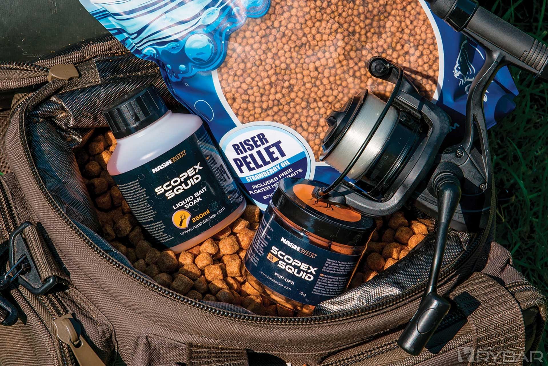Hlavnou zložkou vnadiaceho mixu sú v mojom prípade plávajúce psie granule. Sú jemne olejovité priamo z vrecúška, ale rád ich namáčam aj v atraktore Scopex Squid a robím to z dvoch dôvodov. Po prvé, je to ďalšia forma atraktivity a po druhé, olej vytvára na hladine stopu a tá nám dovoľuje lepšie sledovať kde sa ryby kŕmia.