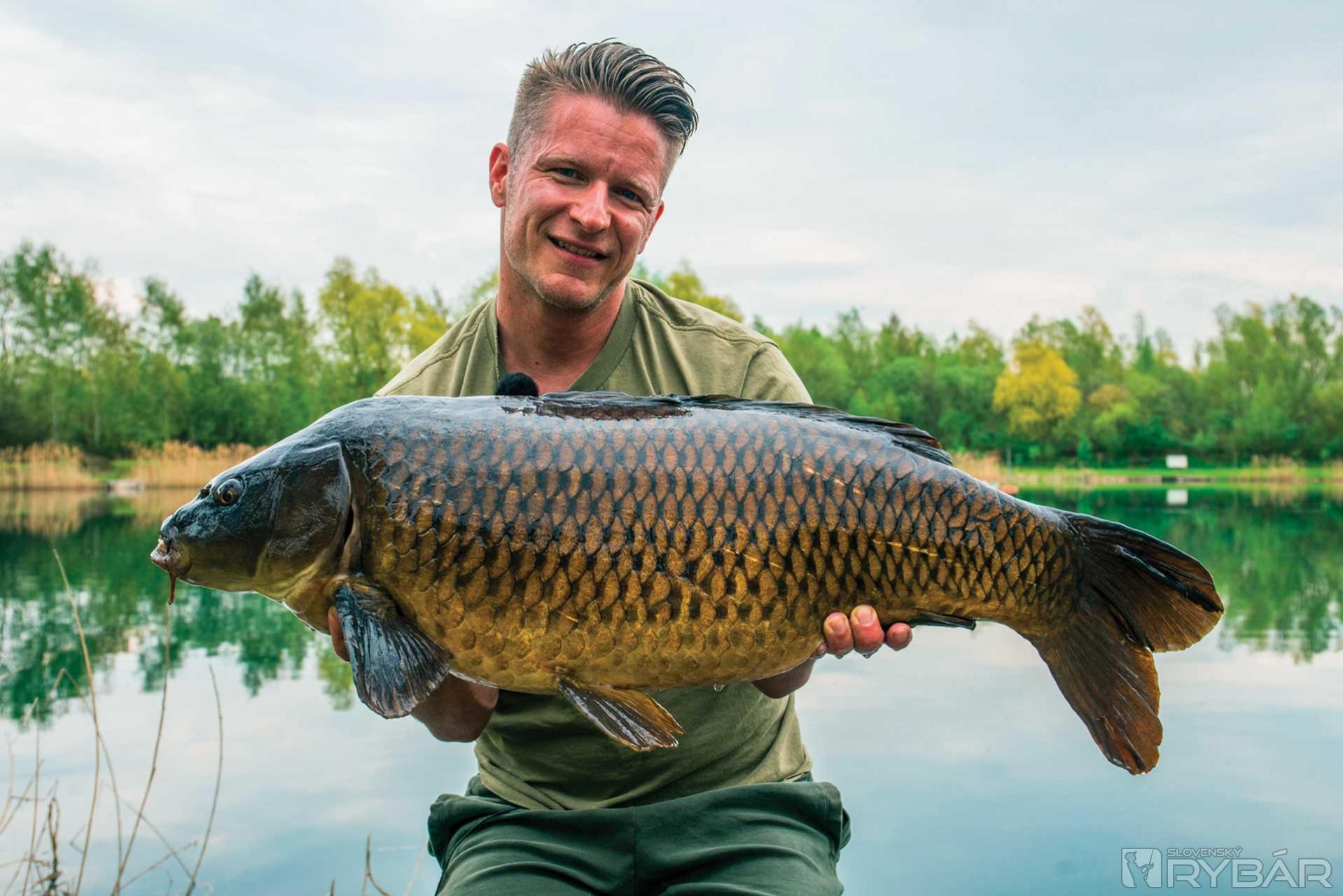 Carl zodvihol jeho trofej a položil na podložku. Zatiaľ čo s Alexom išli fotiť, všimol som si, že niekoľko kaprov sa stále kŕmi. Padlo rozhodnutie opäť nahodiť, prút sme nechali na brehu a zachytili momenty s rybou.