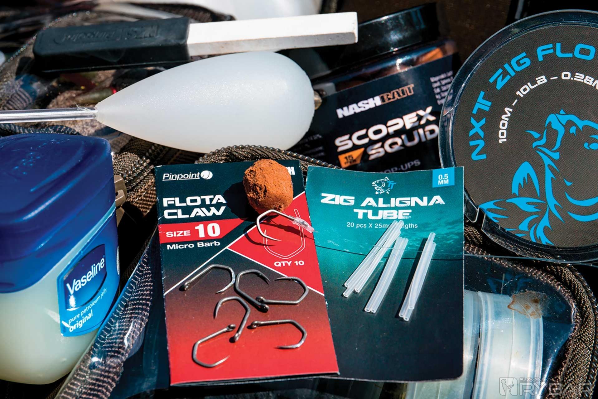 Sedel som tam, očarený, dokázal by som tam presedieť hodiny a dívať sa na ne, ale Carl mi poslal správu, že stoja v zápche na diaľnici. Vybral som teda z auta prúty, jeden z nich som vyzbrojil háčikom č. 6 Flota Claw s Bread Bomb‑om (gumička na upevnenie chleba pri love z hladiny), na druhý som nainštaloval Bolt Machine (niečo na spôsob sbirolina) a totožný háčik, ale desiatku. Chcel som loviť s orezanou pop‑kou Scopex Squid a bol som pripravený na každú situáciu.