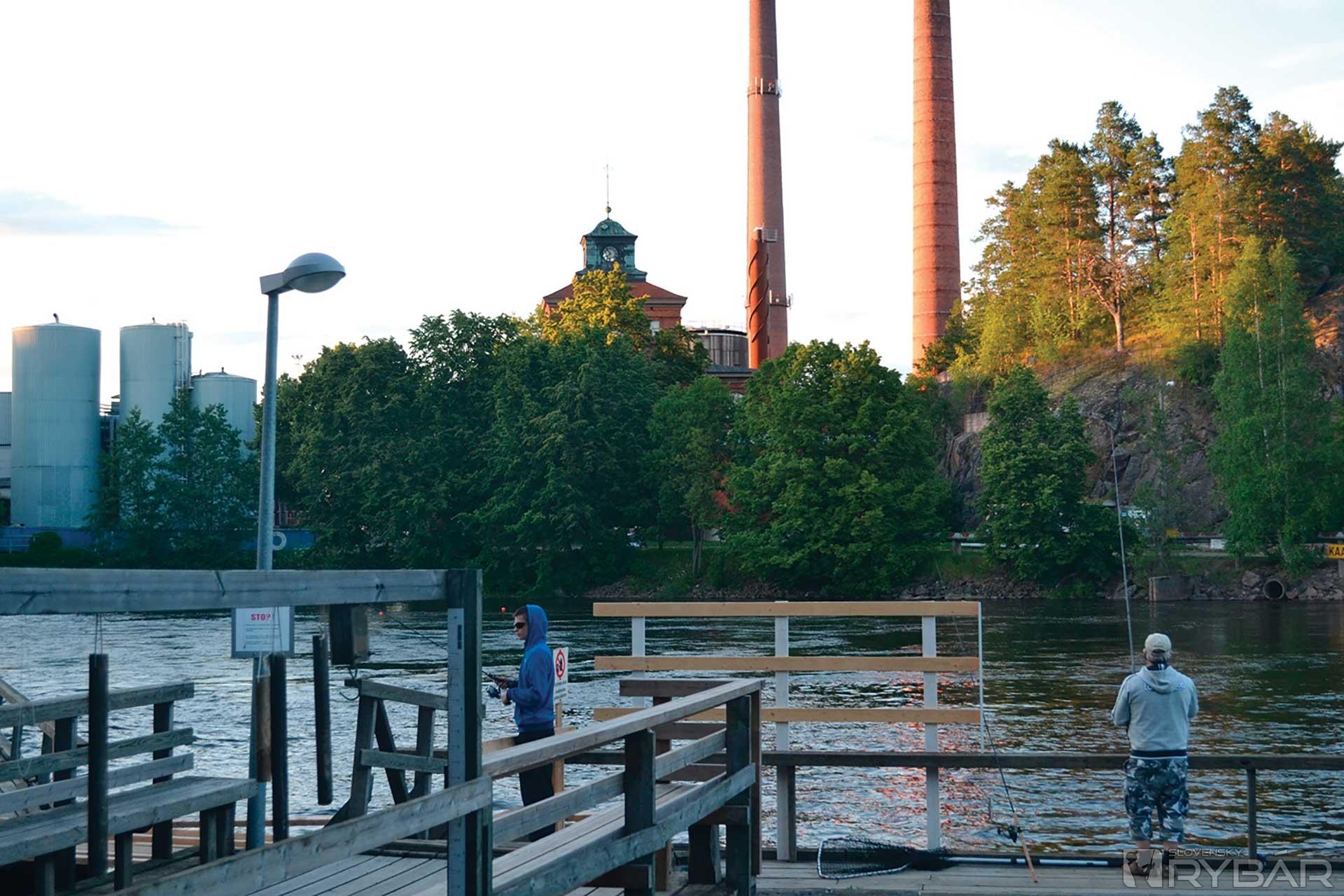 Prichádzame do malej usadlosti s pár domami, kde oslovím sympatickú pani. Tá reč o člne šikovne zvrtne na možnosť prenajať si na dve noci malú útulnú chatku na brehu rieky za vynikajúcu cenu, keďže jej neprišli hostia zo Španielska. Taká skvelá ponuka sa neodmieta a my ostávame tri dni u Nadji. Síce bez člna, ale táto zhovorčivá bývalá ruská baletka nás každé ráno prekvapila voňavými raňajkami servírovanými na presvetlenej terase našej chatky. Mali sme teda neplánovane krásne ubytovanie, ale chýbal nám čln a stále polovica našej výbavy. Rozhodli sme sa teda jeden deň stráviť na mieste Korkeakoski, známej časti rieky Kymijoki, kde sa chytajú lososy z brehu. Bolo to len pár desiatok kilometrov nižšie po prúde, a tak sme už o chvíľu kupovali 12-hodinové povolenky na túto zaujímavú časť rieky, kde sa chytá pod akousi továrňou. Netradične, z drevených mol. Šírka rieky tu dosahovala 50-80 m a kľúčom k úspechu bolo nahadzovať priamo pod protiľahlý breh. S našou výbavou takmer nemožné, ale po pár hodinách socializovania na brehu už stískame v rukách potrebnú výbavu, ktorú nam daroval nový fínsky kamarát Arto. Pestrofarebné mušky naviazané na umelej trubičke, tzv. tubefly, ktoré boli zakončené trojháčikom a cca 50 g podlhovasté olová, ktoré sme viazali na paternoster. Bohužiaľ, v tejto časti rieky sme úspešní neboli, aj keď aj tu sa nám poradilo chytiť statného jalca, šťuku a jednu čajku. Niektorí miestni rybári však chytili pekné lososy. Aj náš kamarát Arto, ktorému sme to dopriali najviac.