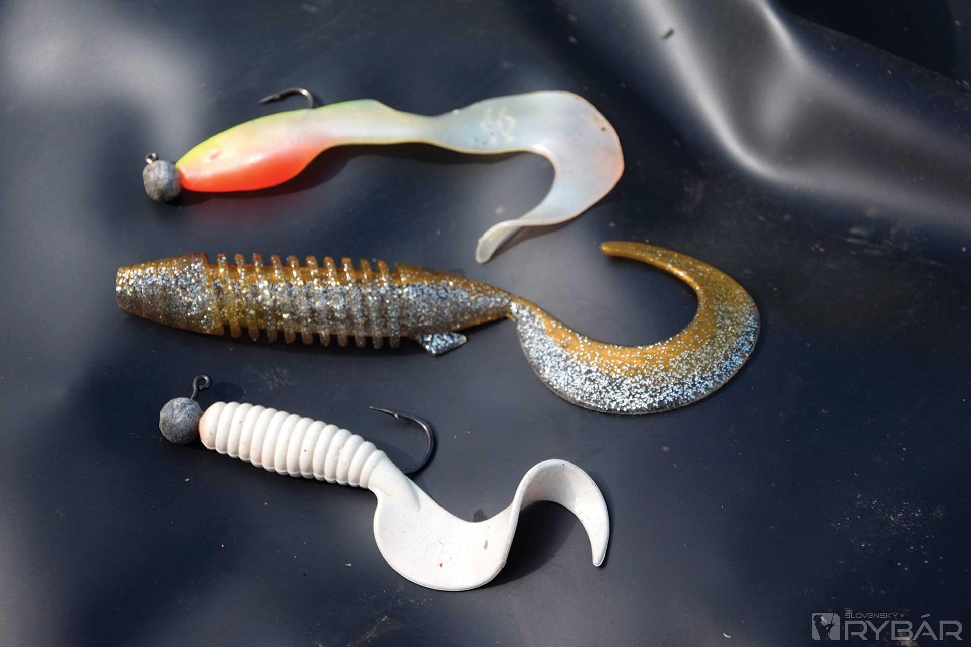 Tie majú najčastejšie telo v tvare rybky a sú zakončené kopýtkom, čiže plôškou, ktorá rozkmitá celú nástrahu, a tým spôsobom vytvára táto nástraha vibrácie vo vode. Tento typ nástrahy mám najradšej na stojatej vode, alebo len na mierne tečúcej. Nástrahu vediem po dne alebo len tesne nad dnom, kde sa zvyčajne nachádza oddychujúci sumec. Potrebujem ho vibráciou chvosta zaujať a prinútiť ho k útoku. Keď k tomu pridáte malé klepnutie o dno, úspech na seba nenechá dlho čakať. Týmto klepnutím napodobníte zranenú rybku, ktorá má nekoordinovaný pohyb a je ľahkou korisťou pre sumca. Vedenie tejto nástrahy nepraktizujem ako u zubáča skákajúcim pohybom, ale len viac‑menej vytváram súvislý pohyb. Pri točení navijaka sa nikde neponáhľam, krútim pomaly až ležérne. Sumec nie je ryba, ktorá sa bude za nástrahou pohybovať rýchlo, tak aj preto prispôsobujem ťahanie nástrahy jeho tempu. Pri osádzaní nástrahy závažím nie je potrebné za každú cenu dávať extra veľké gramáže, aby sme mali až príliš preváženú našu nástrahu, takto by len orala dno a ryba by sa ku nástrahe nedokázala dostať. Preto musíme gramáž prispôsobiť. Na stojatej vode je ideálne dať na gumenú nástrahu dlhú napr. 20 cm, gramáž okolo 15 - 20 g. Pokiaľ by ste dali vyššiu gramáž okolo 40 g táto nástraha sa bude len prerývať bahnom a takto vám sumec nikdy nezaberie. Tento príklad som uviedol na stojatej vode v prúdiacej vode je to trošku iné. Závisí to najmä od sily prúdu. Tu je už na vás ako odhadnete situáciu, a tým aj gramáž olova. Samozrejme, všetko závisí aj od tvaru, hrúbky nástrahy, aby sme vedeli uviesť nástrahu do správneho pohybu.