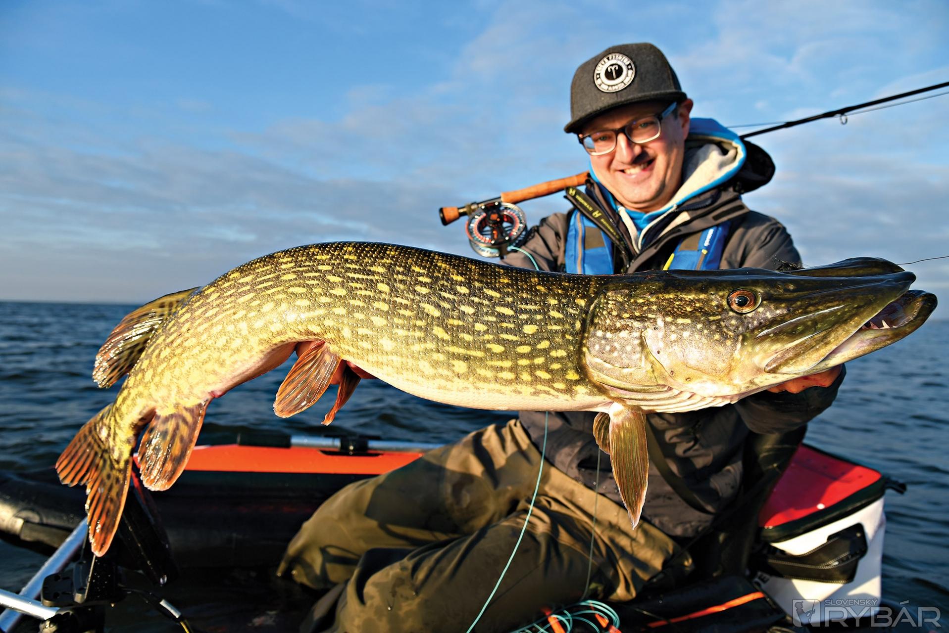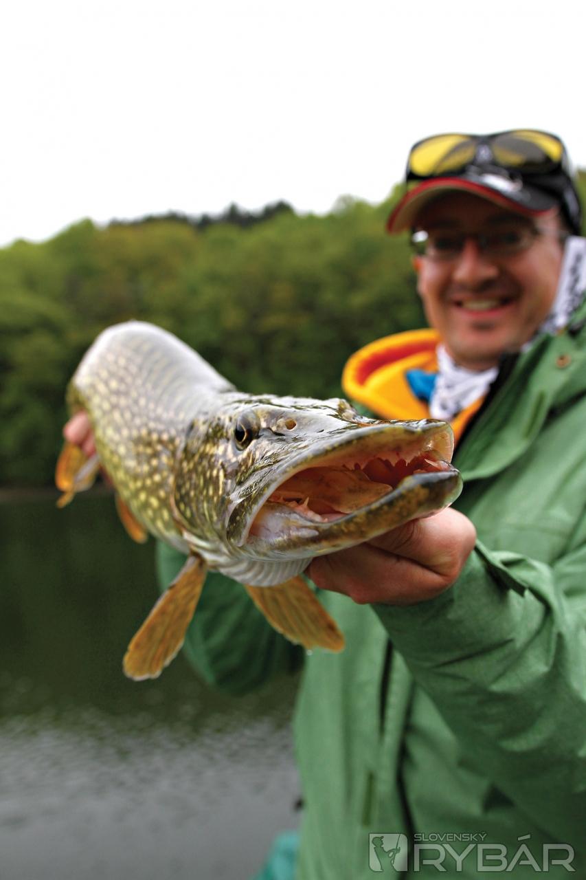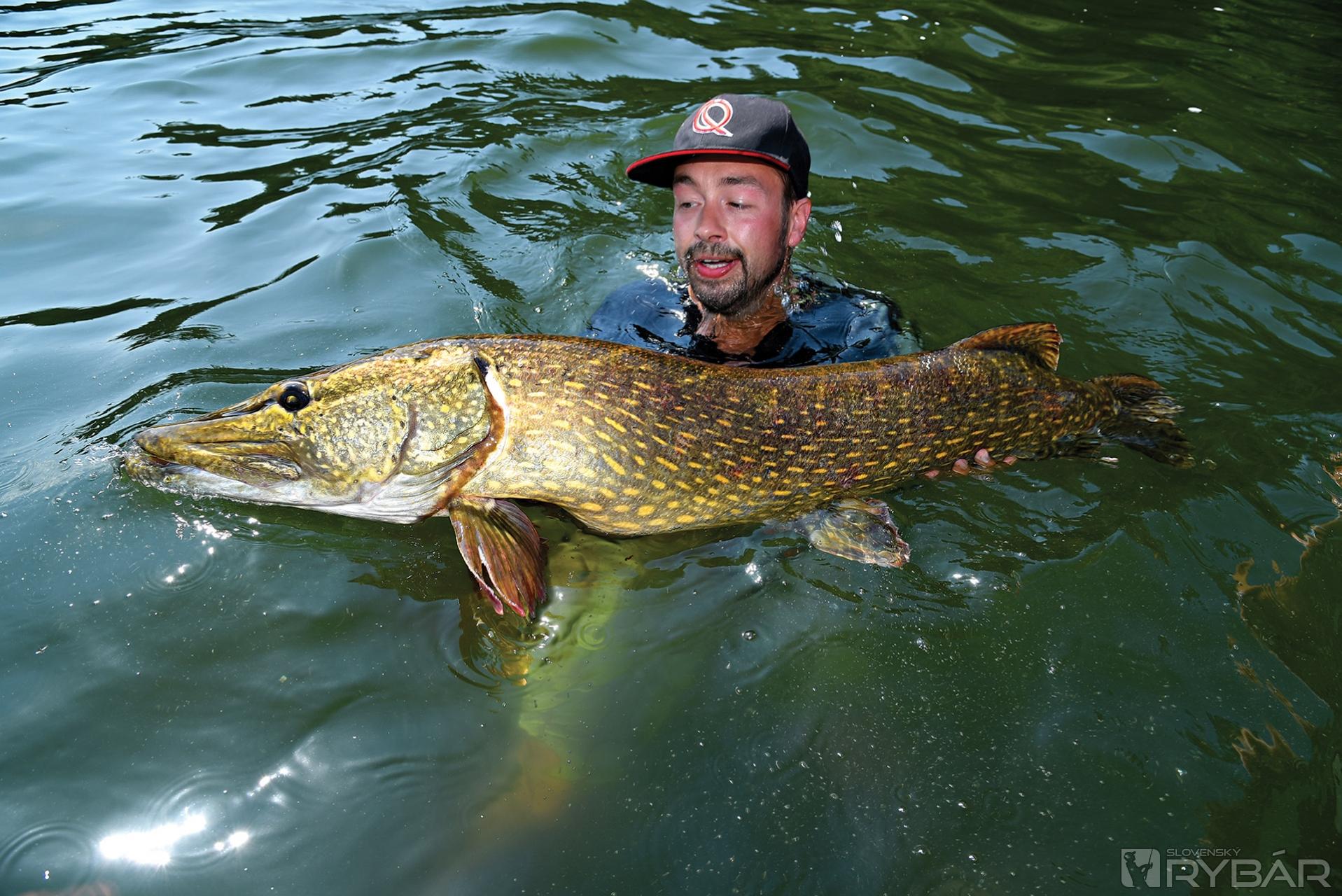 Metrová šťuka lesknúca sa vo večernom slnku. Neodolala čiernozlatému strímru.