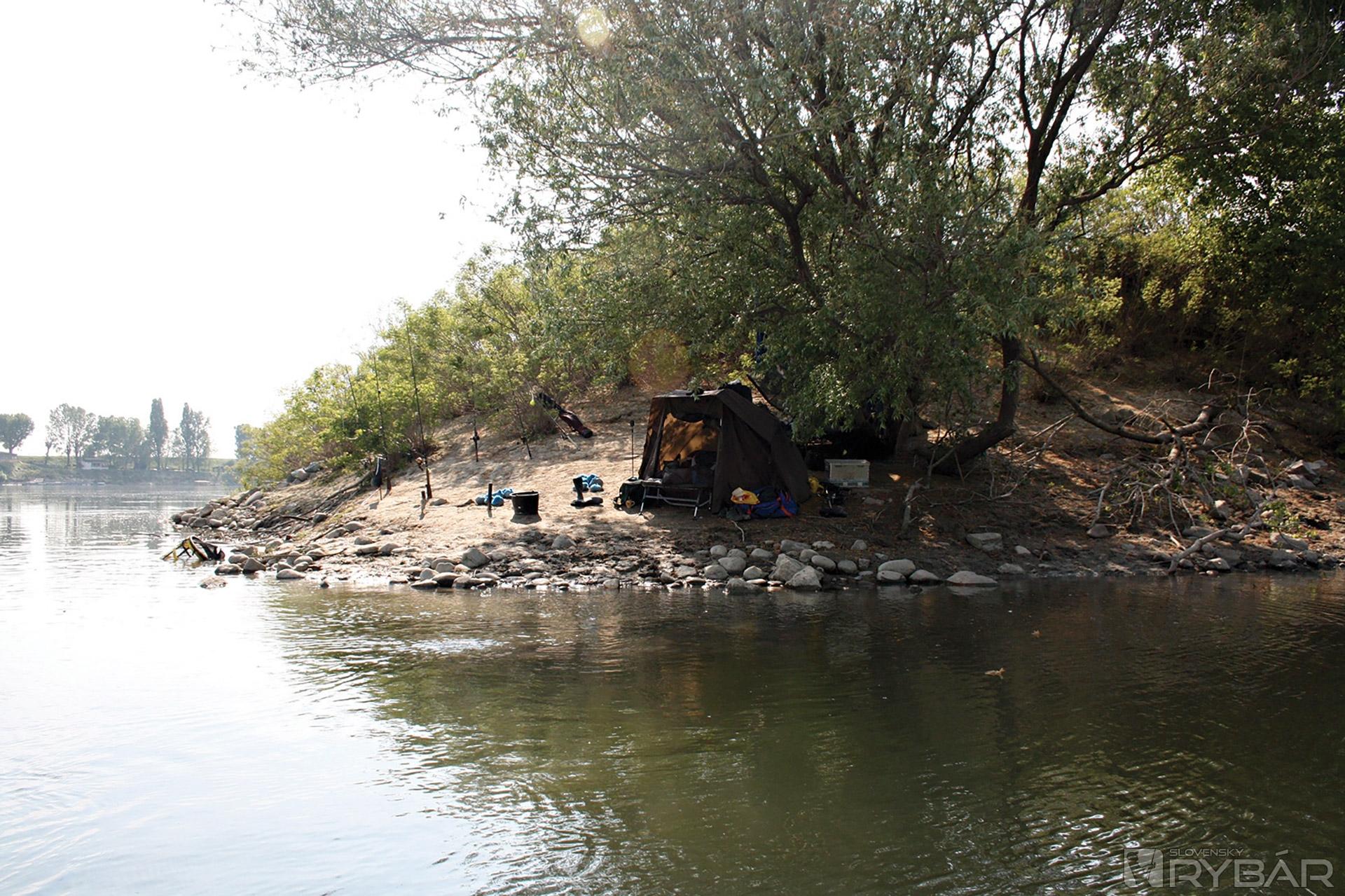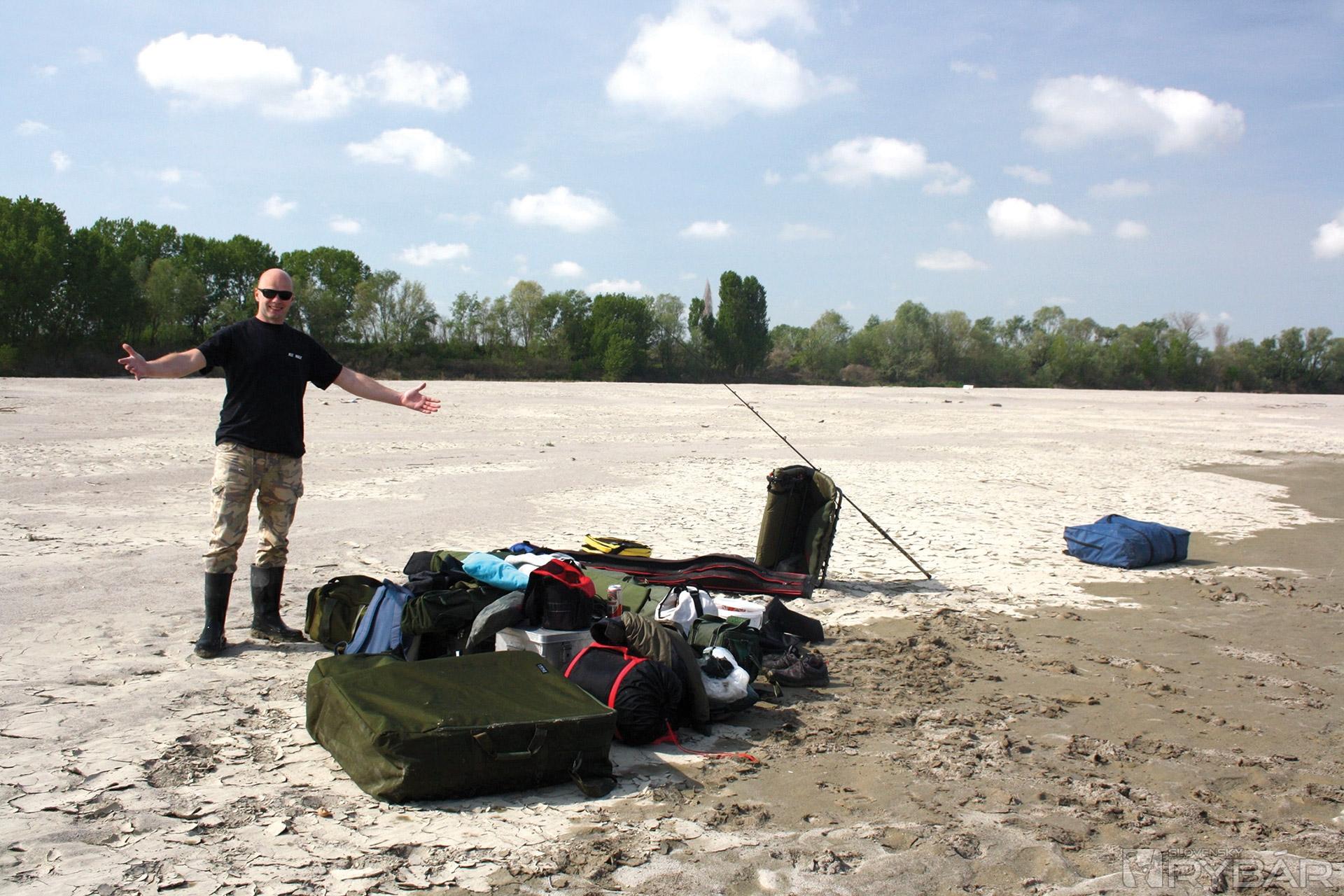 Do rána už sme záber nemali. Hneď ráno sme začali baliť tábor a čakali sme, kedy zabalí aj kaprár na sútoku. A skutočne, okolo ôsmej zabalil. Nasledovalo rýchle prevážanie vecí na náš nový flek. Po presťahovaní sme pri pive rozoberali predošlé skúsenosti. Došli sme k záveru, že sumce momentálne preferujú veľké nástrahy, ale na montáži s dvoma jednohákmi tesne za sebou. Takže keď chceme byť úspešní, musíme použiť veľké, ale štíhle rybky. Presne také ako ryby čefalo, ktoré nám skákali všade naokolo, ale nedali sa na nič chytiť. Čo by sme len teraz dali za naše krásne jalce z Váhu...!