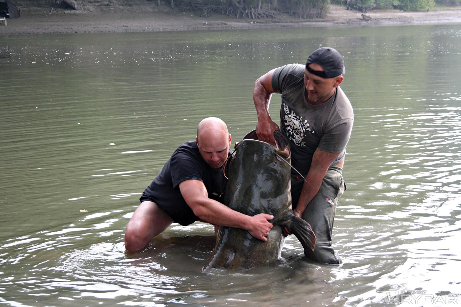Dokázali sme to. Pri brehu nám odpočíva sumec s hmotnosťou určite cez 100 kilogramov. Je to on... Je to ten sumec, za ktorým sme sem prišli! Čas obrov nás tentoraz zastihol pripravených. Vďaka, svätý Peter!