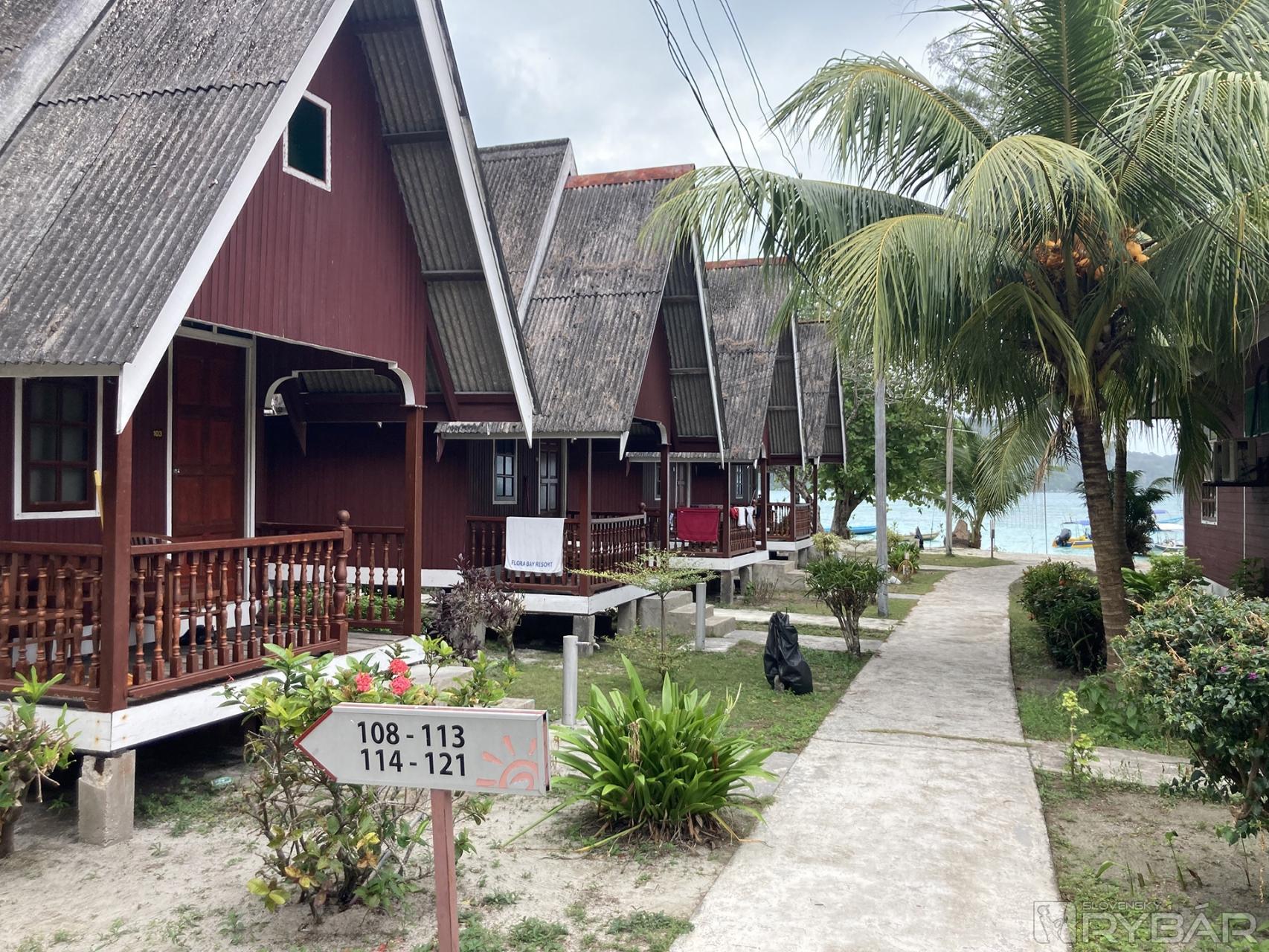 Ostrovy Perhentian, my sme boli ubytovaní najprv na južnej a potom na východnej časti Veľkého ostrova. X naše ubytovanie.