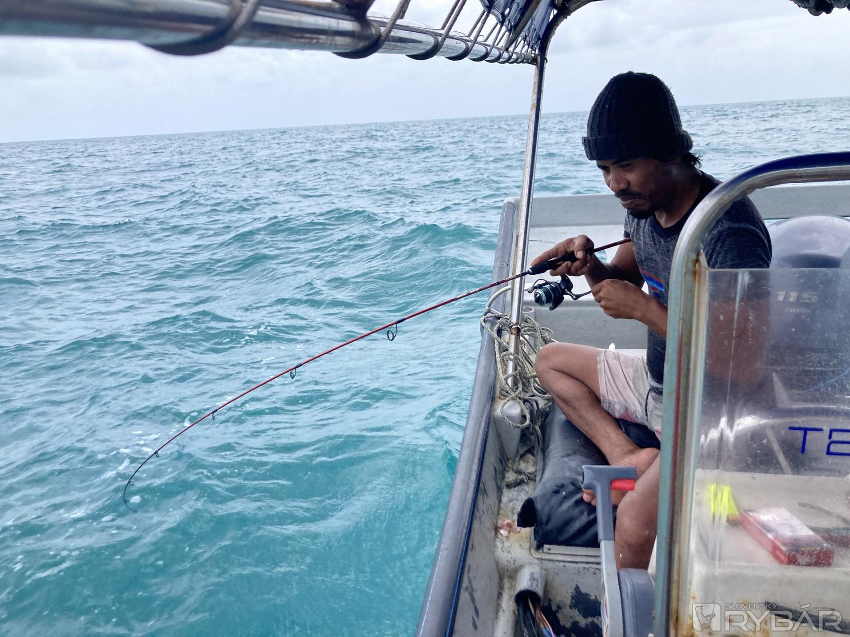 Po večernom telefonáte sme sa s Jemim stretli ráno na pláži. Keďže už máme skúsenosti s „ázijskými sprievodcami“, tak si výbavu nosíme svoju, ale Jemi bol iný kaliber. Takú výbavu som ešte u domorodca nevidel. Ešte aj sonar mal – malý, ale mal – dokonca aj ručné GPS, fakt som čumel. Musím uznať, že Jemi bol najlepšie vybavený rybár, akého som stretol v celej Ázii.
