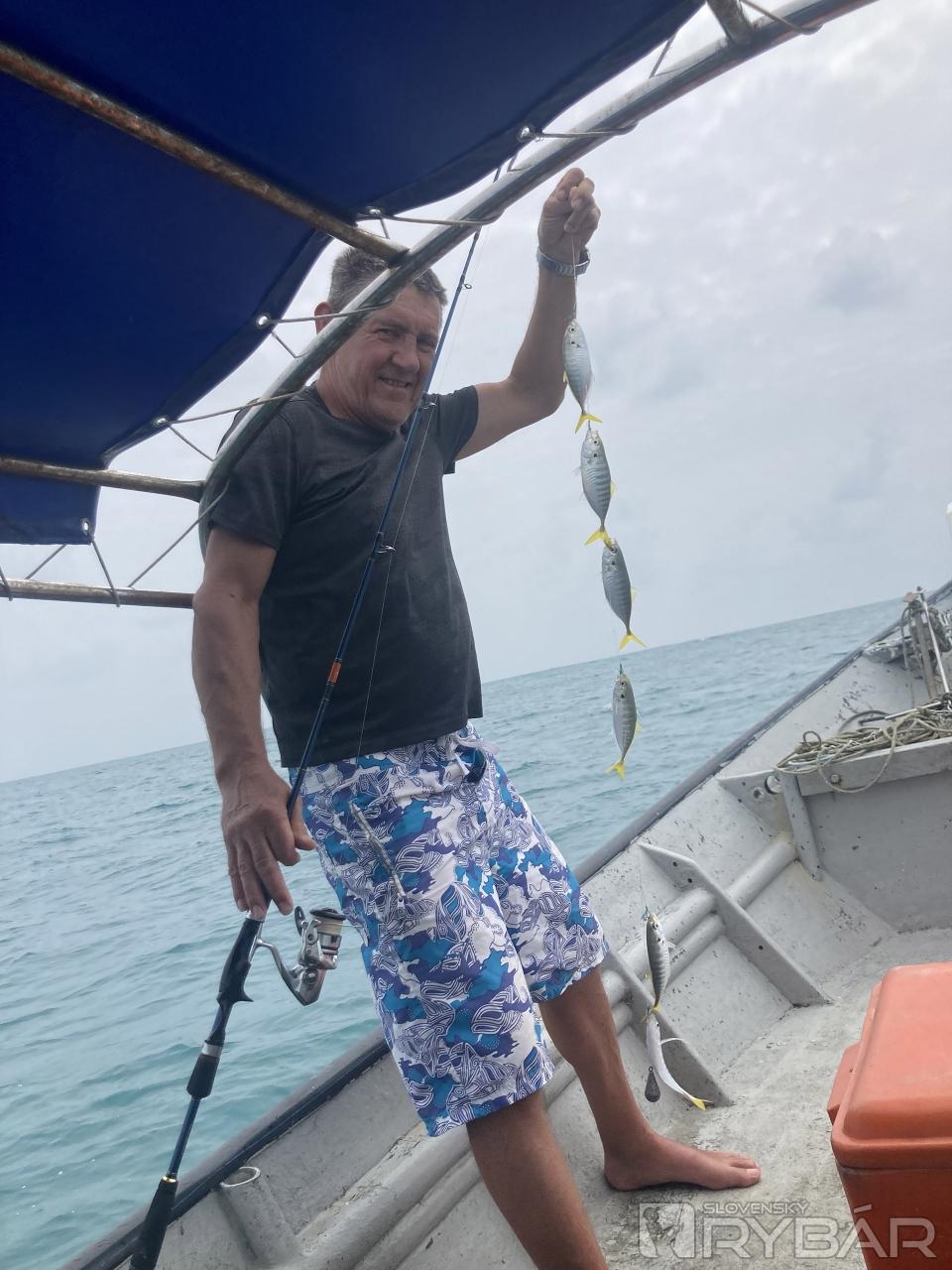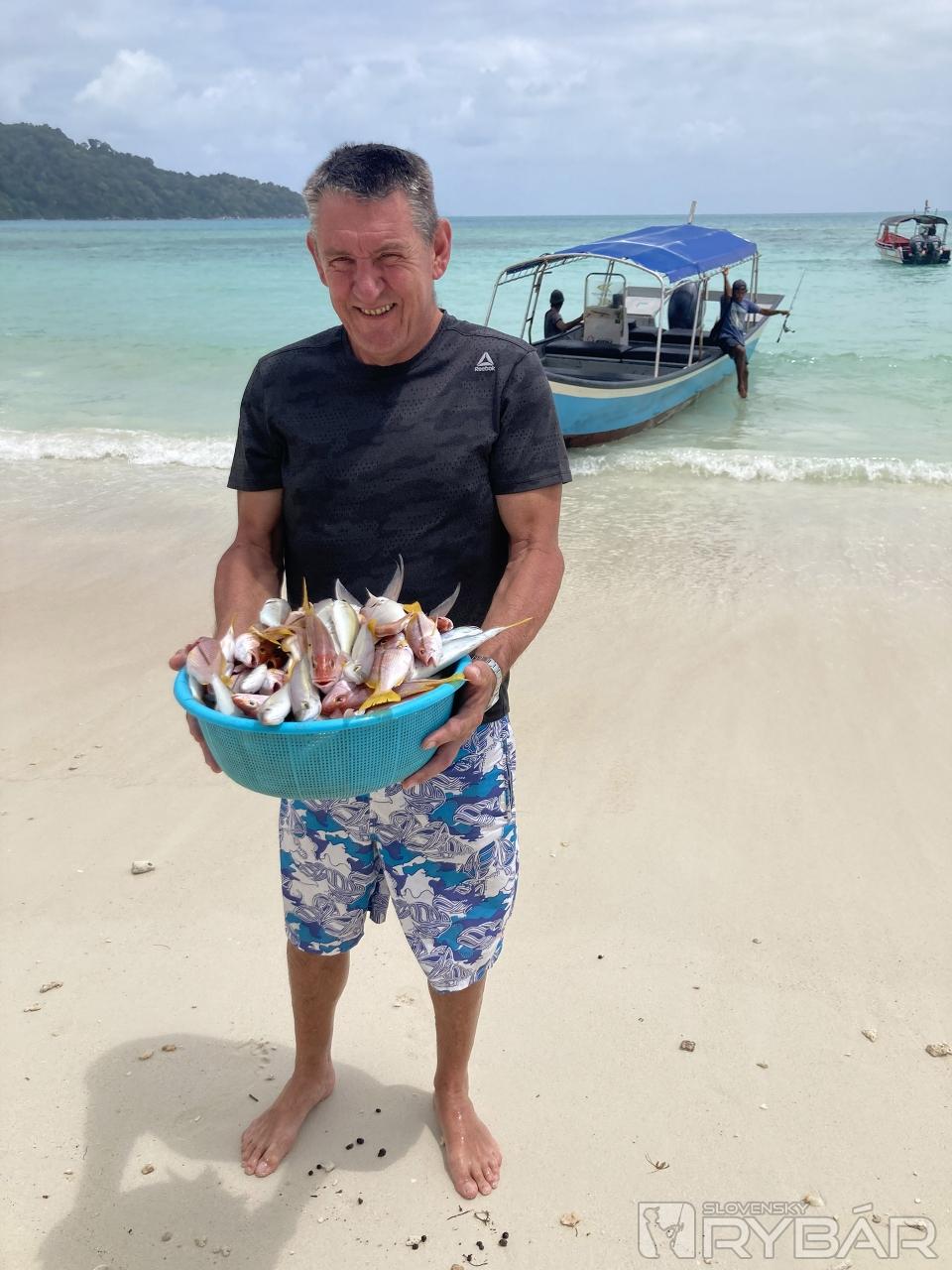Keďže predpoveď hlásila stále nepokojné more, rozhodli sme sa pre rybačku z lode, ale len v blízkosti ostrova. Cena za 3 hodiny bola 300 ringitov, čo je na naše cca 60 €, takže super cena. Nachytali sme na mäso kopu rýb na večerné grilovanie.