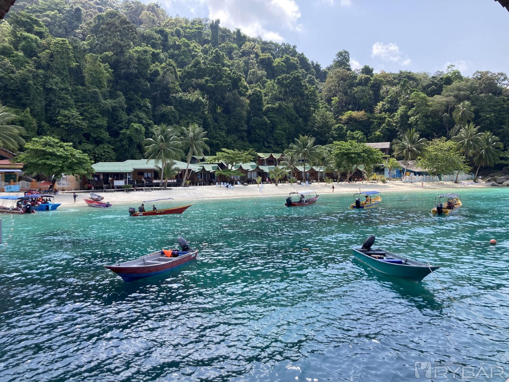 Z Langkawi sme mali ísť na ostrov Koh Lipe, ktorý už patrí pod Thajsko, ale pre silné búrky sme nakoniec skončili na Perhentiane. Na prvé štyri dni sme sa ubytovali v južnej časti ostrova, na dlhej pláži. Fungoval tu teraz každý druhý rezort, čo sú dopady Covidu.
