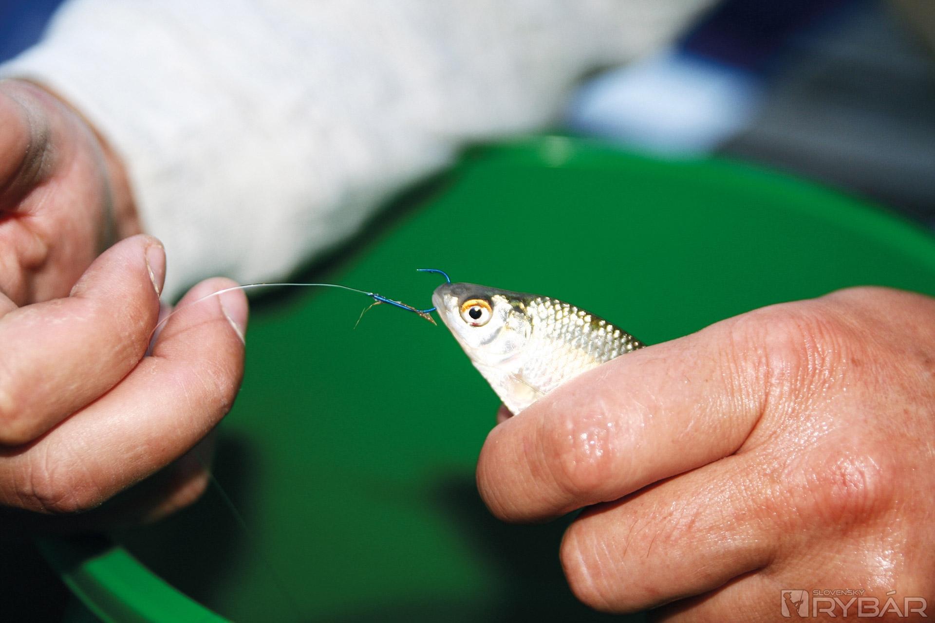 V dnešnom čísle vám prinášame dva systémy na lov dravcov pomocou plávanej. Tento spôsob lovu sme použili počas 24 hodín. Rozmýšľali sme, akým netradičným spôsobom nastražiť živú rybku, ktorý systém bude úspešnejší a bude sa menej zamotávať. Za výdatnej pomoci malých rybárov sme na bič nachytali nástrahové rybky – menšie beličky. Po zostavení montáží sme ich vyviezli pár metrov od brehu. Na vyvážanie sme použili čln. Po umiestnení prútov do stojanu sme systém nastavili nasledovne: swingre boli presunuté na druhý koniec, teda šponovali vlasce pri navijakoch, preklápače boli po celý čas odklopené a vlasec bol vedený k signalizátorom. Po zábere sa vlasec vypol zo swiingra a ryba mohla odvíjať úplne voľný vlasec z navijaka. Vcelku jemný a citlivý spôsob nastraženia. Montáže boli umiestnené v relatívne plytkej vode, cca pol metra hlboko, asi 1,5 metra za zatopenou cestou. Prvá montáž dovoľovala rybke rotovať. Nadväzec bol naviazaný na mikroobratlíku.