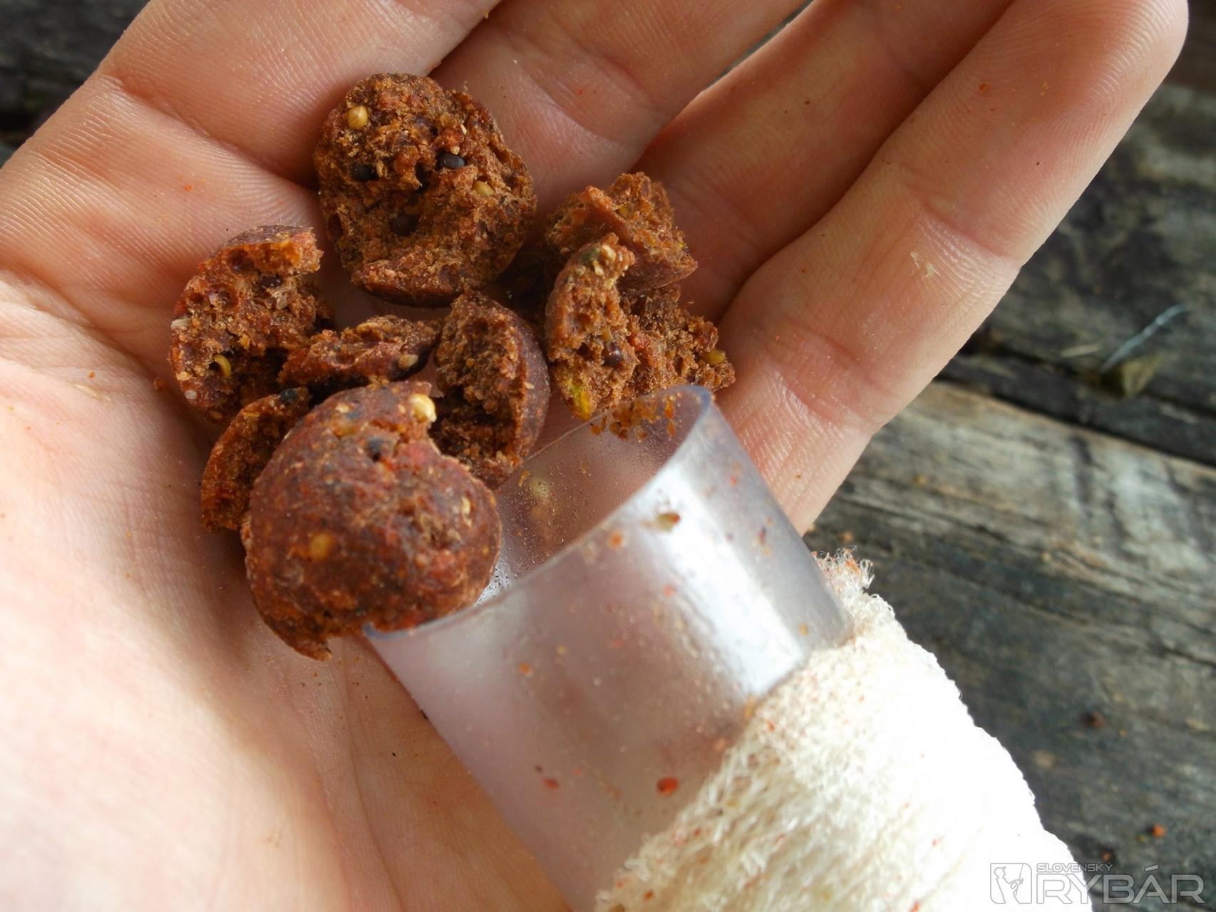 Ak chceme zvýrazniť už aj bez toho skvelé krmivo a nástrahu, môžeme ju okúpať v Red fire, hustom dipe, ktorého práca vo vode je báječná. Na zvýraznenie nástrah pod háčikom pridávam obaľovaciu pastu v príchuti chilli con carne. Prút sa vždy snažím nahodiť na to isté miesto, lebo mi z neho vychádzajú pekné ryby.
