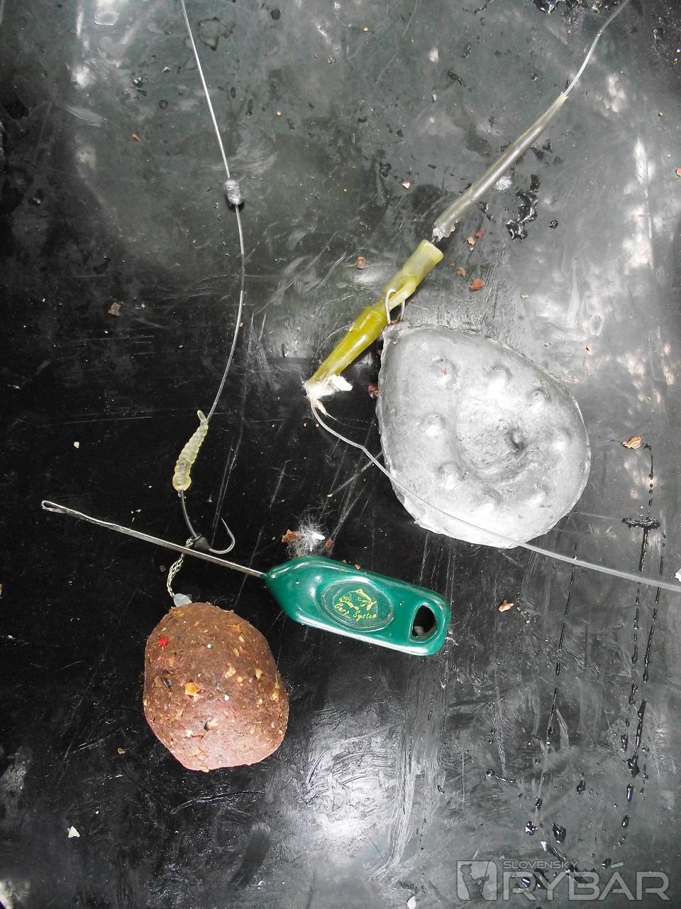 Rieky: tu robím len pár zmien, úplne vynechávam šokovú a olovenú šnúrku, maximálne používam šokový silón tiež s hrúbkou 0,50 mm. In-line olovo vymieňam za odpadávajúce s hmotnosťou 200 g. Predlžujem montáž zhruba na 40 cm. Zhotovenú ju mávam už zo spomínaných materiálov. Boilies dávam ďalej od háčika, asi tak 3 cm. Na riekach platí zlaté pravidlo, že v jednoduchosti je krása. Vyvarujte sa všetkým zbytočným uzlom, ak nepotrebujete nutne šokový silón, tak ho nedávajte. Každý uzol navyše je ako magnet na plávajúce nečistoty.