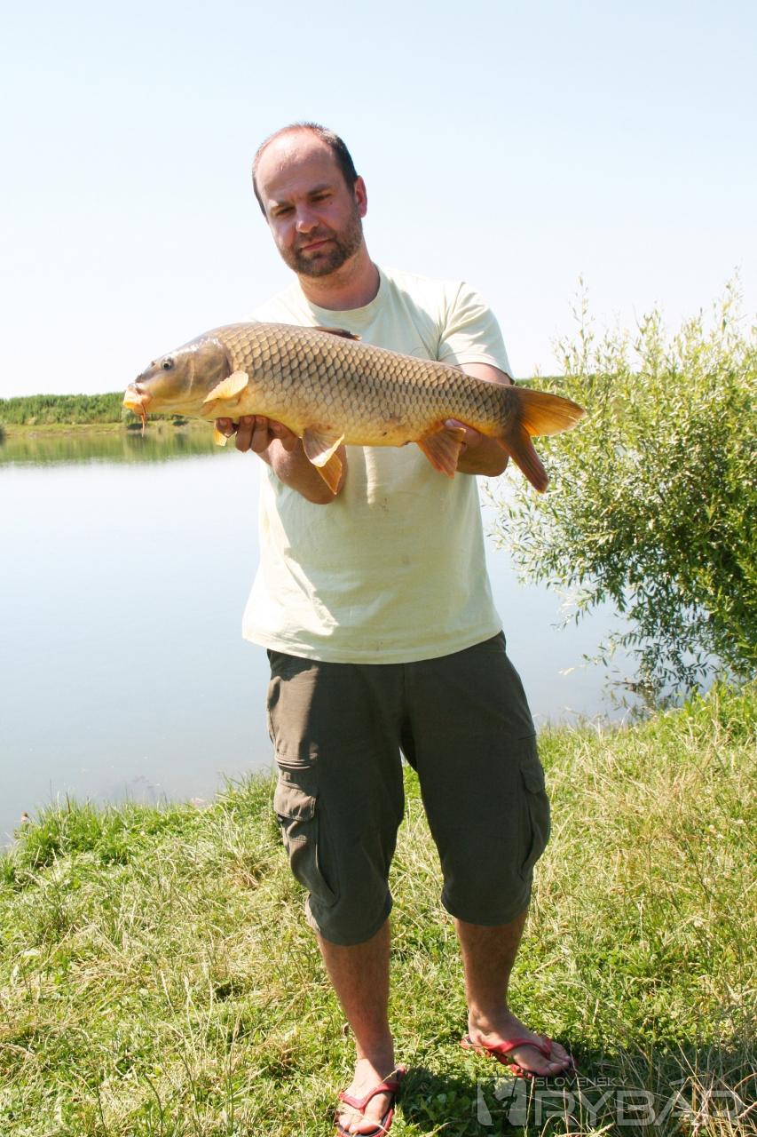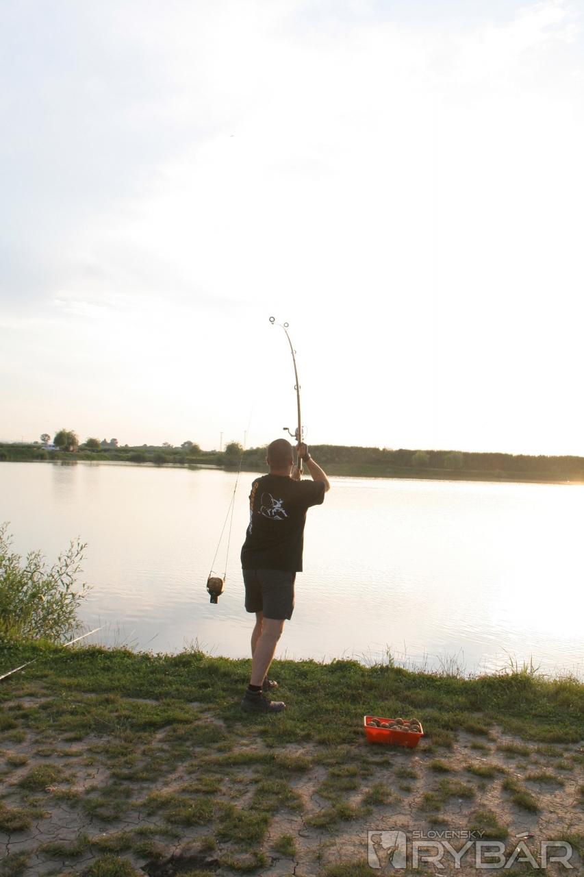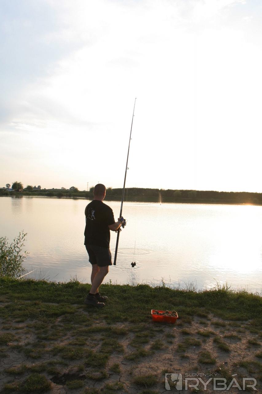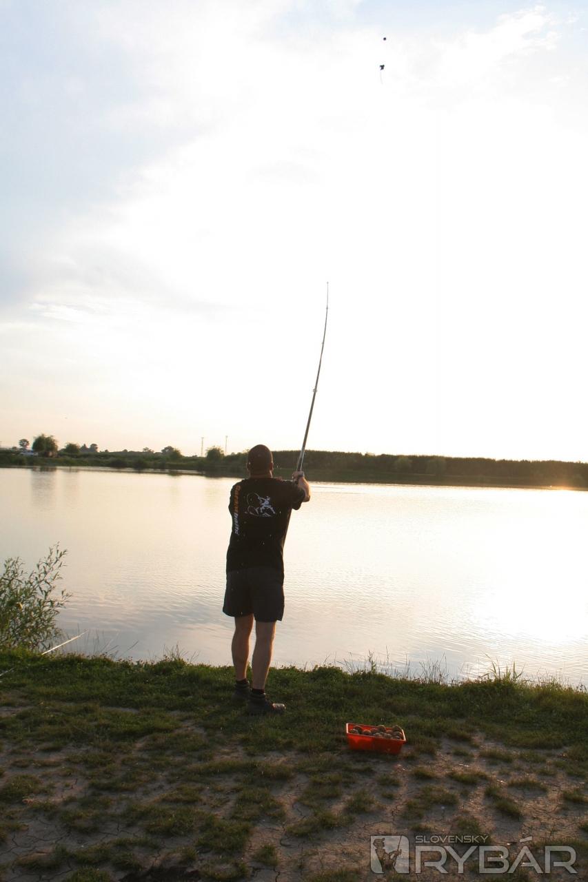 Príjemnú spoločnosť nám robil Peťo Uhrík, náš pravidelný prispievateľ a rybár telom aj dušou. Ukázal nám lov s niekoľkometrovou odkladačkou, na ktorú veľmi úspešne lovil karasy a pri jeho opätovnom večernom príchode nám predviedol excelentné vnadenie nahadzovacím košíkom od Carp´R´Us.