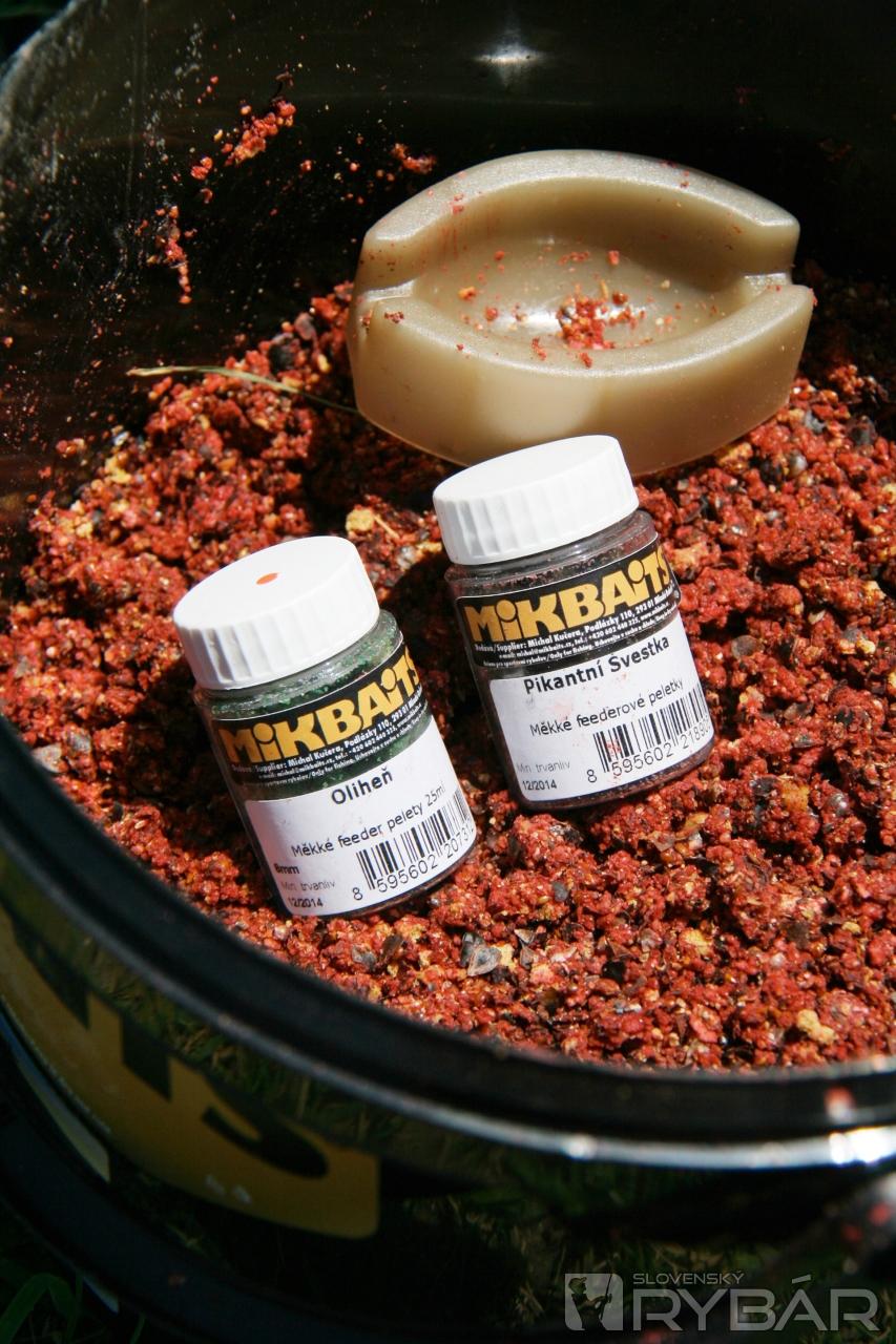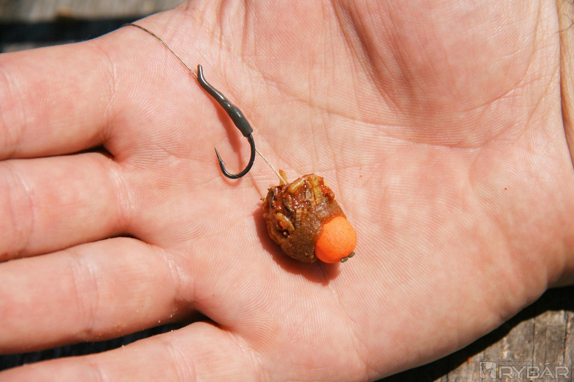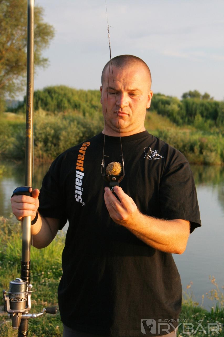 Podľa inštrukcií kamaráta Peťa Uhríka bolo potrebné poriadne rozkŕmiť lovné miesto. Rozrobili sme si mix dvoch krmív na rybacej báze, pridali malé peletky, niekoľko guľôčok boilies a megakukuricu. Túto lákavú zmes sme nahadzovali s pomocou rakety. Už doma v redakcii sme sa dohodli, že budeme loviť na jeden feedrový prút a jeden prút nahodíme na ťažko.