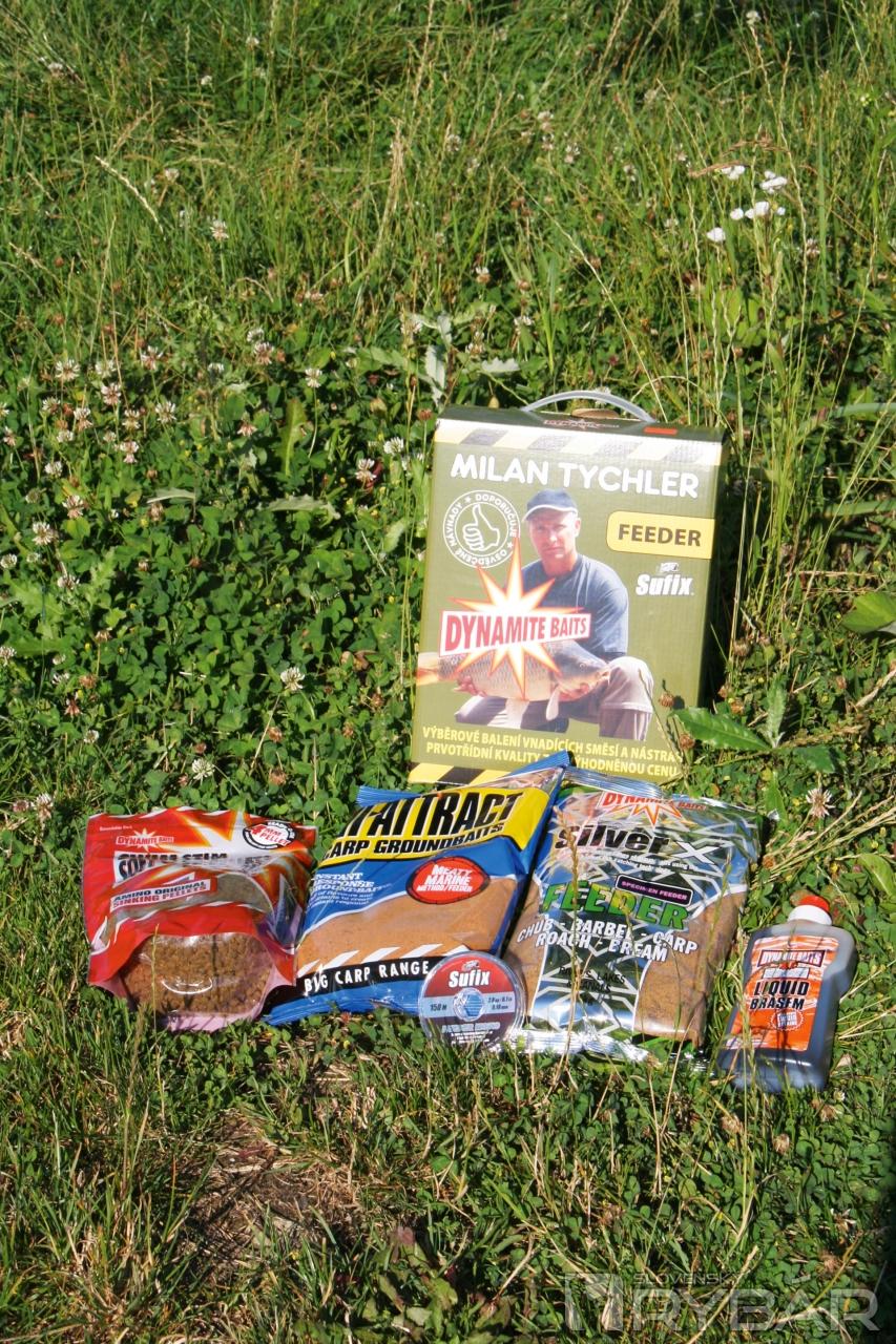 Každý z nás si vybral feedrové krmivo a nástrahy, ktorými sme lovili. Lukáš testoval „box“ Dynamite Baits v edícii Milan Tychler – Feeder. Balenie obsahuje dve kilové vrecúška účinného krmiva, betainový liquid, mäkčené potápavé peletky a 0,18 mm vlasec Sufix. Milan skúšal krmivo Traper s pridaním anglickej vločky. Na háčik dával Extra extrudy a Fluo extrudy od českého výrobcu Kaprpro. Andy lovil na mäkké feedrové peletky od Mikbaits a do kŕmidla dával Robin Red method mix od totožného výrobcu.