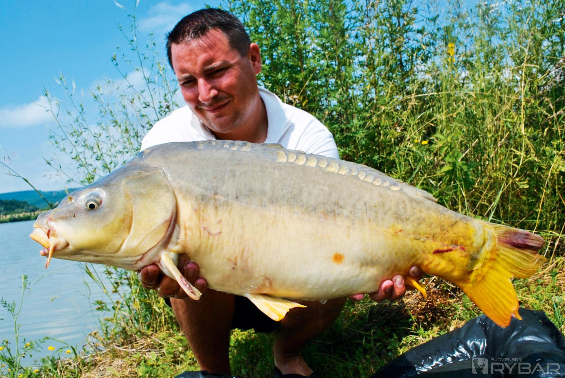 Prvý opatrný záber prišiel pred zotmením. Podarilo sa ho zdolať, vyfotiť a pustiť späť do tejto krásnej vody. Sadol som si znovu na čln a vyviezol montáž na lovné miesto. Pustil som ju vedľa bójky, odkiaľ zabral aj predchádzajúci krásavec. Prihodil som na montáž cca 6 guľôčok 24 mm a vrátil sa späť na breh. No už z diaľky som spozoroval, že kolega má v ruke prút a zdoláva ďalšieho kapríka. Ponáhľal som sa na breh ako som len vedel. Po krásnom dlhom zdolávaní sa podarilo kapra vytiahnuť. Bol to krásny lysec, ktorý vážil 11,63 kg.