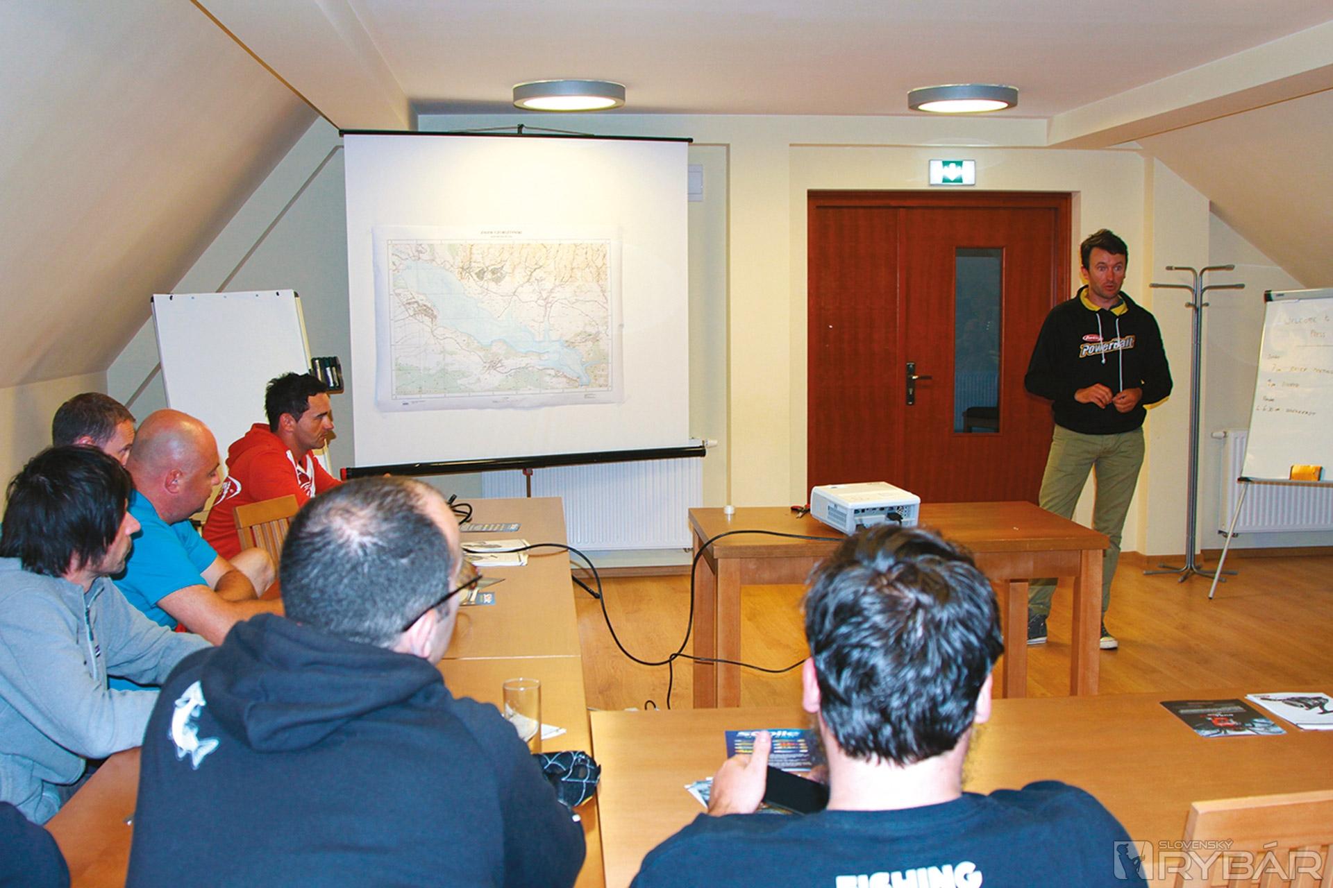 Sylvain Legendre, dizajnér nástrah Berkley nás privítal a oboznámil s jazerom, pravidlami a programom na nasledujúce dva dni. Neskôr dostal každý účastník testovací balíček pozostávajúci z dvoch škatúľ s nástrahami – jednu s gumami a jednu s voblermi Sébile a ďalšími praktickými darčekmi. Po večeri nám Sylvain porozprával o nových nástrahách. Všetky, ktoré sme mali v boxoch boli novinky na sezónu 2016 a do predaja sa dostanú v septembri tohto roka, takže sme mali jedinečnú príležitosť sa s nimi prakticky oboznámiť už teraz.