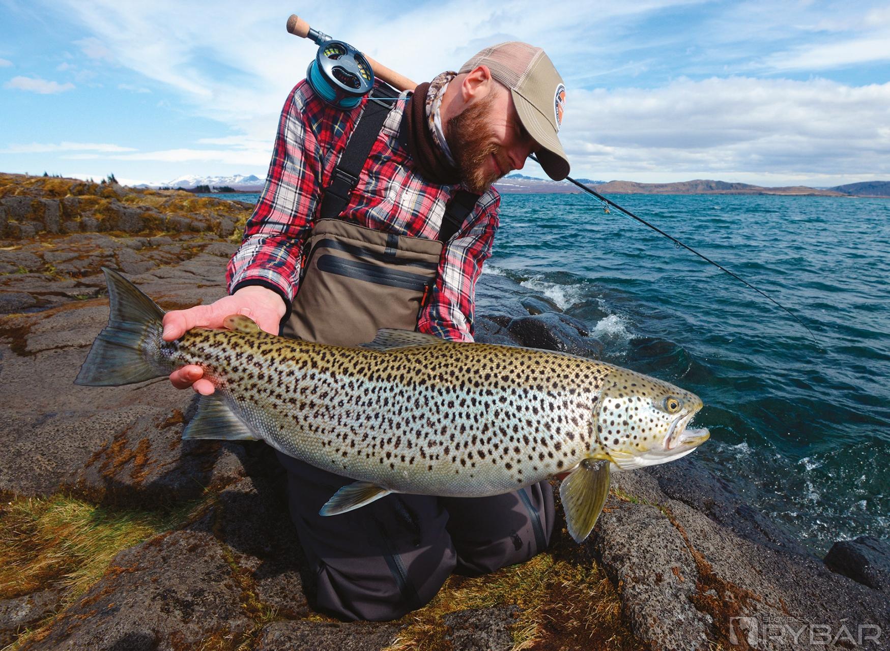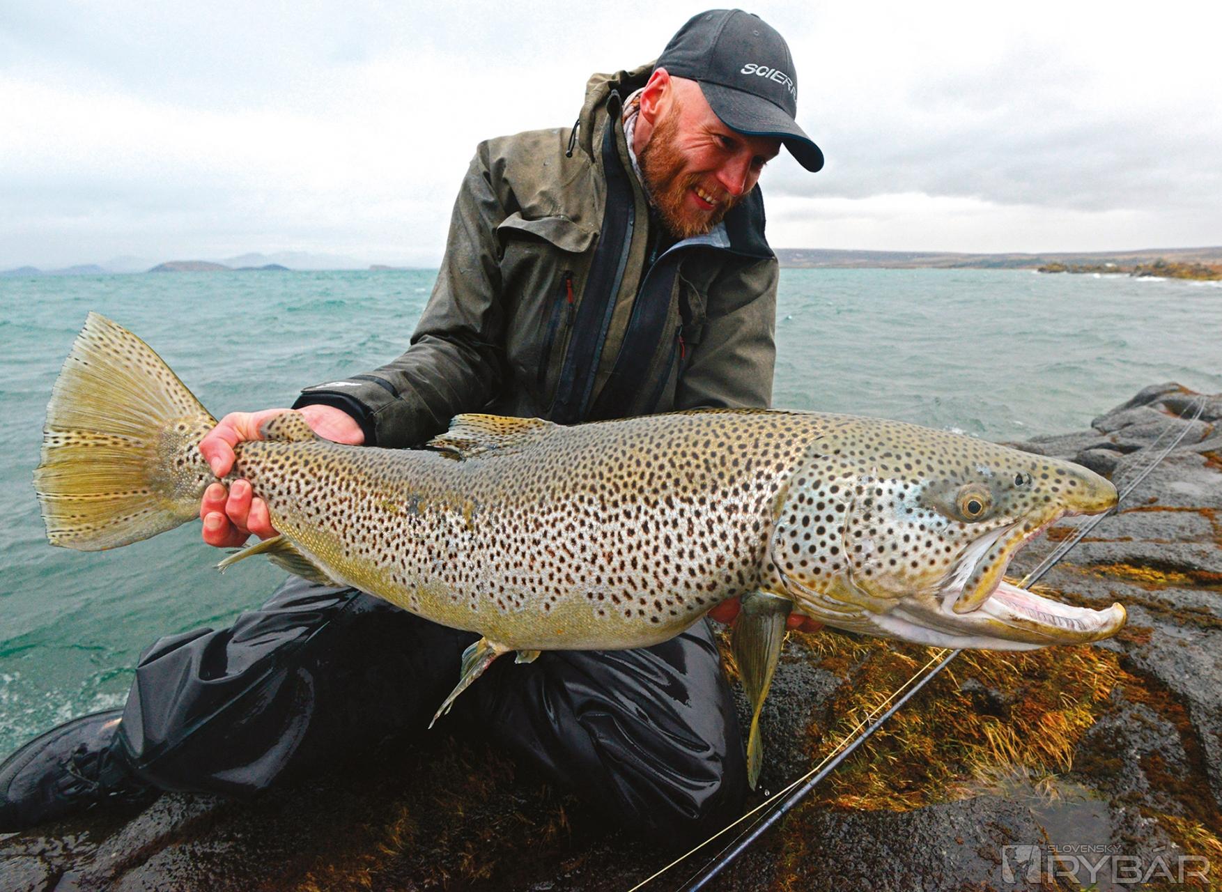 Keď ryba konečne spomaľuje a zdá sa, že sa zastavila, súboj je v novej fáze. Namiesto trielenia do hlbočiny bojuje na povrchu a snaží sa striasť nevysvetliteľný tlak a ťah. Zúfalo sa opieram do ryby až sa z korkovej rukoväte ozýva vŕzganie a po dlhom súboji konečne získavam prevahu. Ryba pomaly pláva ku brehu, navíjam šnúru a o chvíľu zbadám rybu v roztrieštených vlnách. Je veľká. Naozaj veľká! Teraz je to všetko o konštantnom tlaku na rybu a pokoji. Muška je, zdá sa, dobre zaseknutá v rybích čeľustiach, ale ostré vulkanické skaly navôkol sú nebezpečné. Ak sa ryba rozhodne ukryť sa medzi ne, nie je pochýb, že sa nadväzec okamžite rozreže. Ryba nie je ešte unavená, ale nie je ani pánom situácie. V každom prípade sa snažím priblížiť ju k malému miestu, kde je náš islandský sprievodca pripravený s podberákom. Keď sa ryba prevalila cez rám podberáka, vidíme starodávneho bojovníka – masívnu rybu s veľkou kanibalovou hlavou, silným chvostom a množstvom bodiek, zlatým bokom a veľkými očami pred veľkolepými metalízovo‑modrými skrelami. Ryba atakuje hranicu 93 cm a aj napriek tomu, že nie je taká tučná ako iné ryby z jazera, má takmer 10 kíl. Je to naozajstná ryba snov – tá, ktorá vo mne spôsobuje pocity eufórie a vzrušenia. Môj rybársky kolega, Martin Eljer Olsen, ktorý súboj sleduje, zhotovuje niekoľko fotografií s pozadím olovenej oblohy a ja rybu rýchlo púšťam do mrazivých vôd jazera. Tu je ryba doma, pleskne chvostom a mizne v azúrovo‑modrých hĺbkach. Sme na Thingvallavatn, masívnom jazere pod zasneženými horami, na prastarých lávových pláňach a machových lúkach. Je začiatok júna, ale je stále veľmi chladno. A ostrý, severný vietor ženie masu vody, vytvárajúc vlny trieštiace sa na kamenistom pobreží.