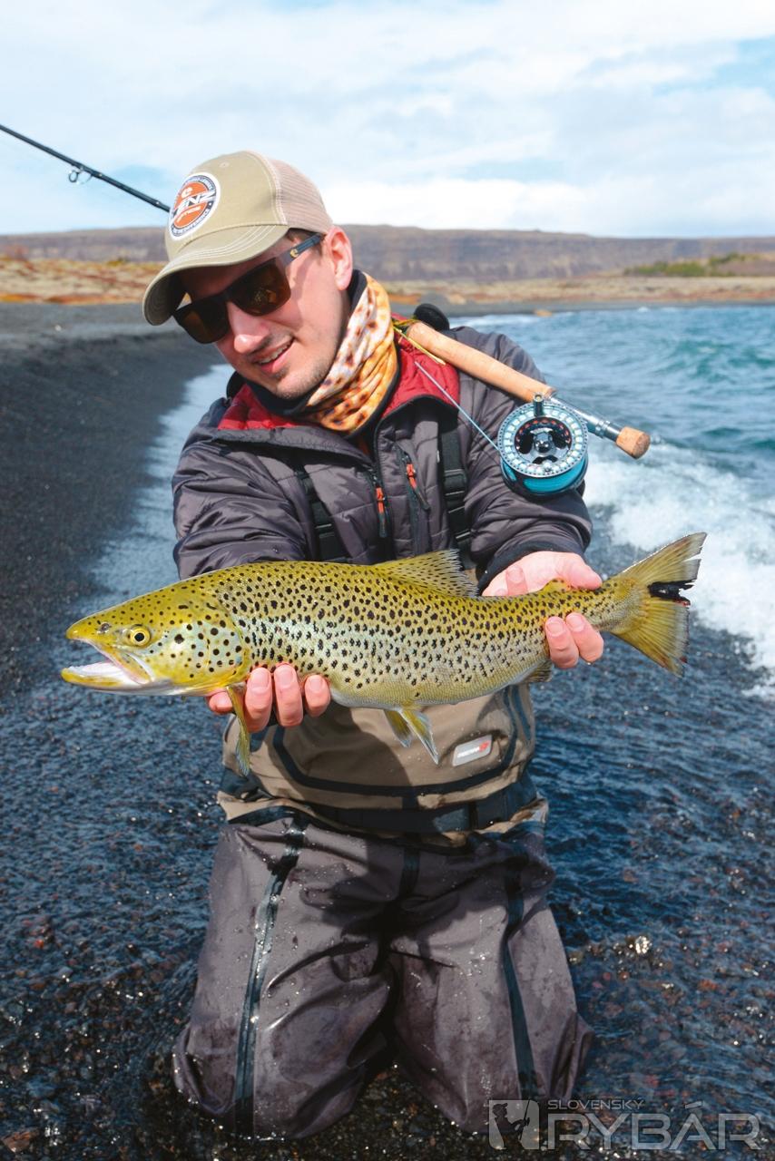 Záber je brutálny a rázny, ako neočakávaná rana do brucha. Neoblomne som nahodil do príbrežných vetrov, nadväzec sa síce poriadne nenarovnal, ale nahodil som 20 metrov pozdĺž sopečného pobrežia jazera. Ešte skôr ako som vôbec stihol zaseknúť háčik, prút sa ohol a z navijaka sa začala šialene vymotávať šnúra. Prerezala krištáľovú hladinu, cez penové vlny a o chvíľu som zbadal z navijaka vychádzať fluo‑žltý backing. Vrčanie navijaka nemá konca… Kútikom oka vidím zlovestné stvorenie vyhodiť sa do vzduchu, asi 60 metrov odo mňa. Narovná sa nad hučiacimi vlnami a s treskotom spadne na chrbát, nasledované vodotryskom kvapiek meter nad hladinou a šokom v mojom srdci. Krátko potom pokračuje backing očkami môjho 9-stopového, šestkového prúta a ja sa snažím upokojiť nervy na prasknutie.