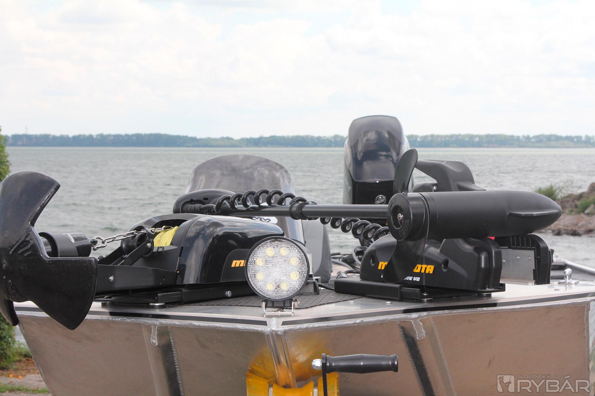 Nakoľko sa zaoberáme aj prestavbami lodí, už aj tak dobrú loď sme trocha vylepšili. Klasický nohou ovládaný elektromotor Minnkota Edge sme vymenili za Terrovu 55 lb s iPilotom. Kto už totiž mal iPilota, iný motor nechce. Je to ako s automatom v aute. Tiež som si myslel, že si nikdy nekúpim automat, ale teraz už viem, že pravda je niekde inde a už pozerám len po automatoch. Mimochodom, pre ťahanie člna ani nič lepšie nie je. Vedľa elektromotora pribudol ešte elektrický navijak na kotvu a medzi nimi LED halogén. Často chytáme ešte aj po zotmení a neraz sa musíme vracať aj 2-3 km. Návrat po tme len s čelovkou nie je nič moc.