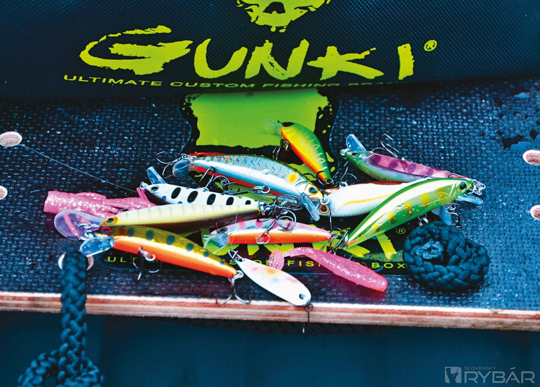 Gunki Whiz je dobrá nástraha na sivone. V pozadí vodotesná brašňa, bez ktorej by som na vodu nevyplával.