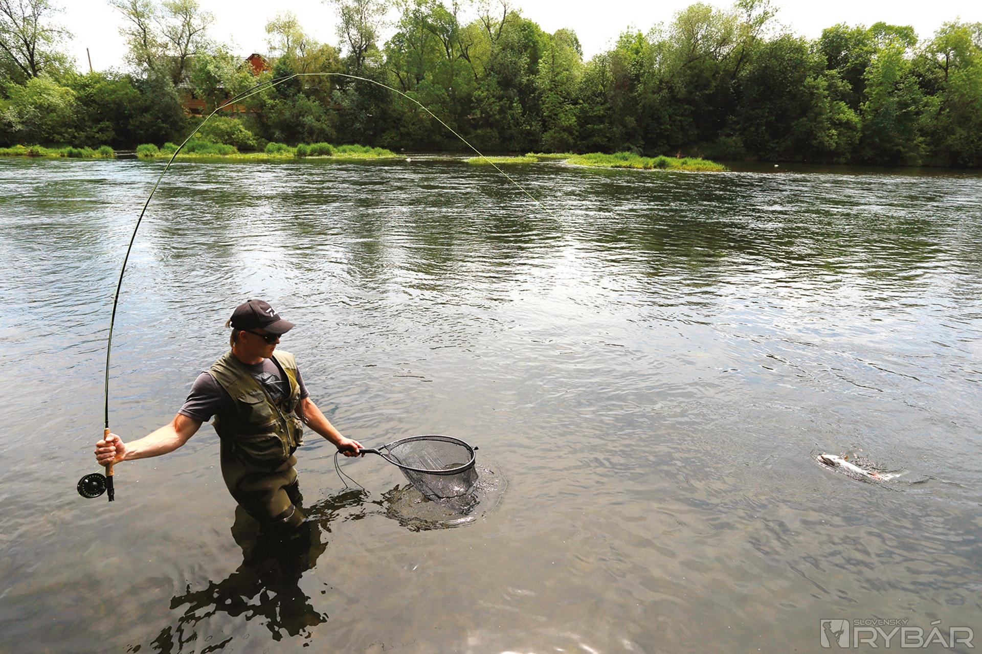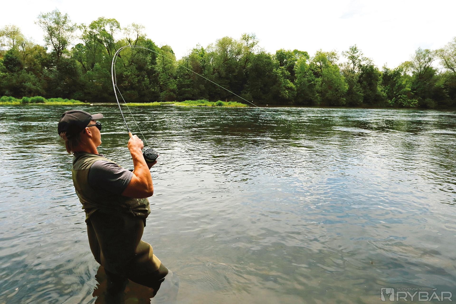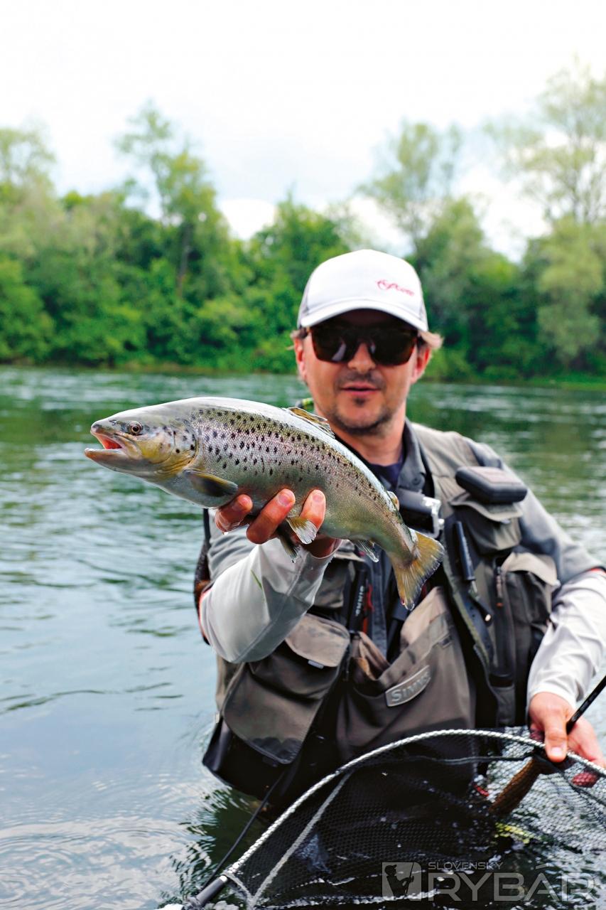 Konečne stojím pevne ukotvený v silnom prúde. Po prsia zabrodený v studenej vode Váhu, ktorá ma príjemne ochladzuje v horúcom popoludní. Asi aj ryby sú na tom podobne a vychutnávajú si poobednú siestu a ležérnu pohodu krásneho dňa. O moje nástrahy prakticky nejavia žiaden záujem. Pritom „francúzska nymfa“ patrí k stopercentným metódam! Ale zdá sa, že nie vždy. Kontrolujem hodiny, pomaly sa blíži čas nášho odchodu. Ešte posledných pár nahodení… Vtom sa mušky pri dne o niečo pevne zachytia. Je tu len rovné štrkové dno, prakticky bez väčších skál, a tak spočiatku nechápem ako je to možné. Skúsim potiahnuť silnejšie, keď sa pomyselné dno dáva do pohybu. Pomaly, rozvážne a ja okamžite viem, že som to s tou štrnástkou nadväzcom trochu prehnal! Dobre som chalanom radil, ale nedali si povedať. A ja som tiež úplne rovnaký – nepoučiteľný. Cítim, že to nebude dlho trvať…