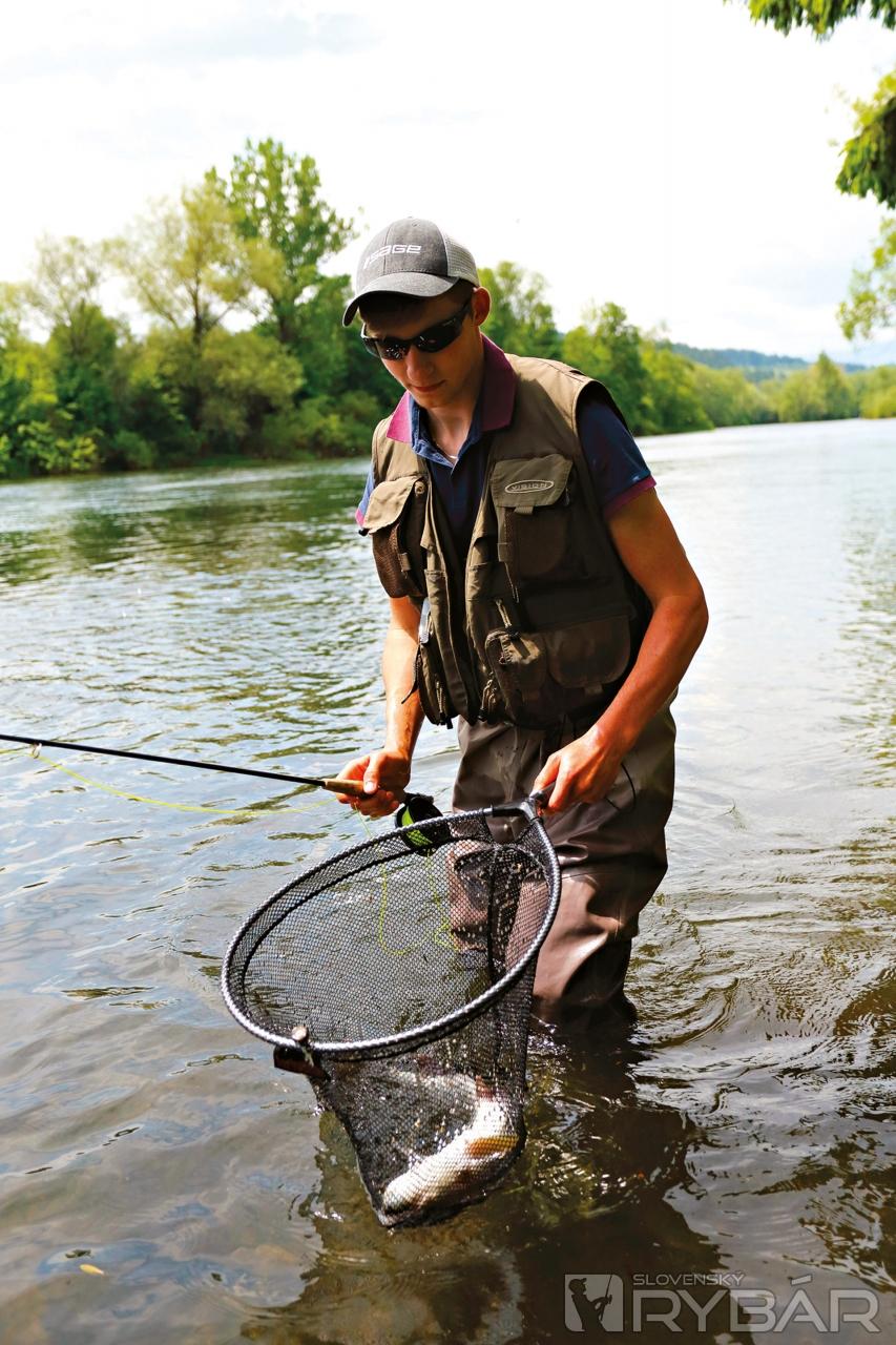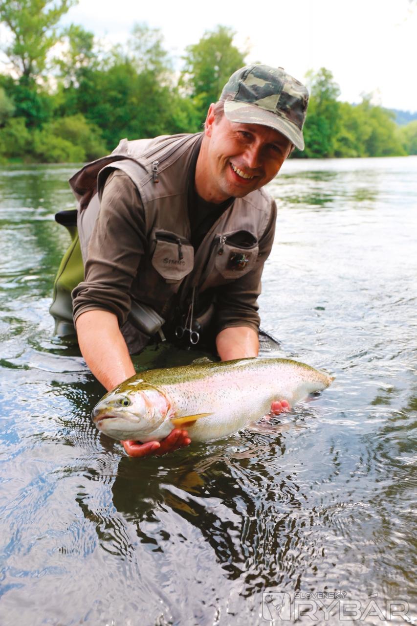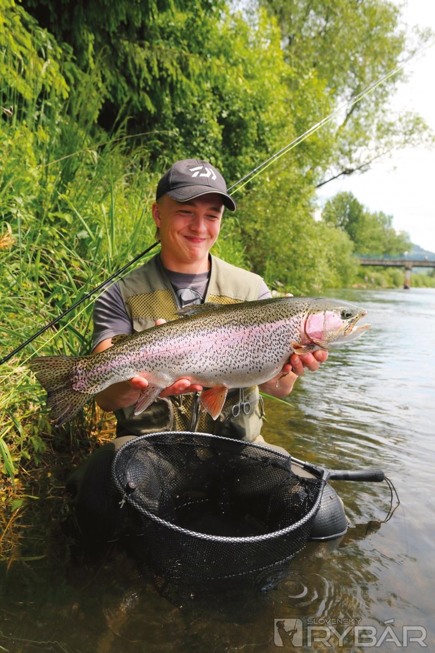 Ani nie na druhý, možno tretí hod sa na hladine objaví pomerne veľký vír. Ryba po záseku okamžite uniká do stredu rieky, prakticky sa nedá zadržať. Roman v zlomku sekundy povoľuje šnúru a začína sa náročný súboj. Jemný nadväzec odoláva prudkým výpadom veľkej ryby. Zdá sa, že to bude kapitálny dúhak. Roman ho zatiaľ s prehľadom zdoláva. Krásne stavaná ryba využíva silné prúdy Váhu, ale nakoniec ju Roman úspešne podoberie. Opatrne ho zbavujeme zradnej mušky, robíme pár fotiek na pamiatku a púšťame späť na slobodu. Ani sme si nevšimli, že sa tu zišlo viacero rybárov, ktorí obdivovali nielen krásny úlovok, ale aj majstrovstvo mladého muškára. Veď šesťdesiatka dúhak sa nechytá každý deň…