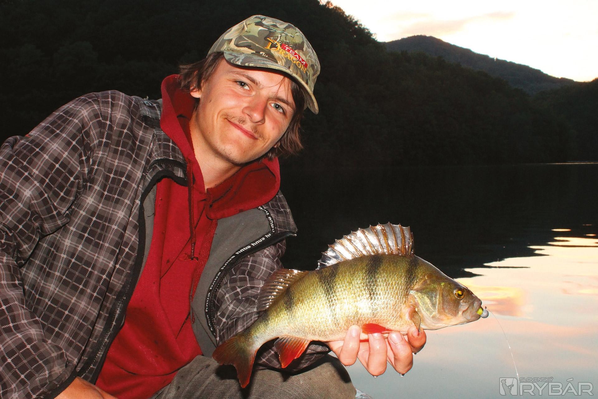 Na kameňoch som presedel asi hodinu, no napriek tomu sa zrazu neviem rozhodnúť pre vhodnú nástrahu. Napokon idem na istotu, malý agresívny vobler bude to pravé orechové. Hádžem to presne do miest, kde verím v útok ostrieža. Nemýlim sa. Rivalita robí svoje a prvý z nich, ktorý stratil nervy, je krásny tridsiatnik. Citlivo zladená brzda okamžite vyspevuje „ostriežiu“ pieseň, ktorú mám tak rád. Najkrajšia hudba pri vode. Sfarbený je nádherne, červené plutvy žiaria vo vode. Keď síl rybe ubudne, vstúpim do toho a pozdvihnem ho z vody, aby som uvoľnil háčik z papuľky. Nasleduje rituál s fotkou a šup nazad do vody.