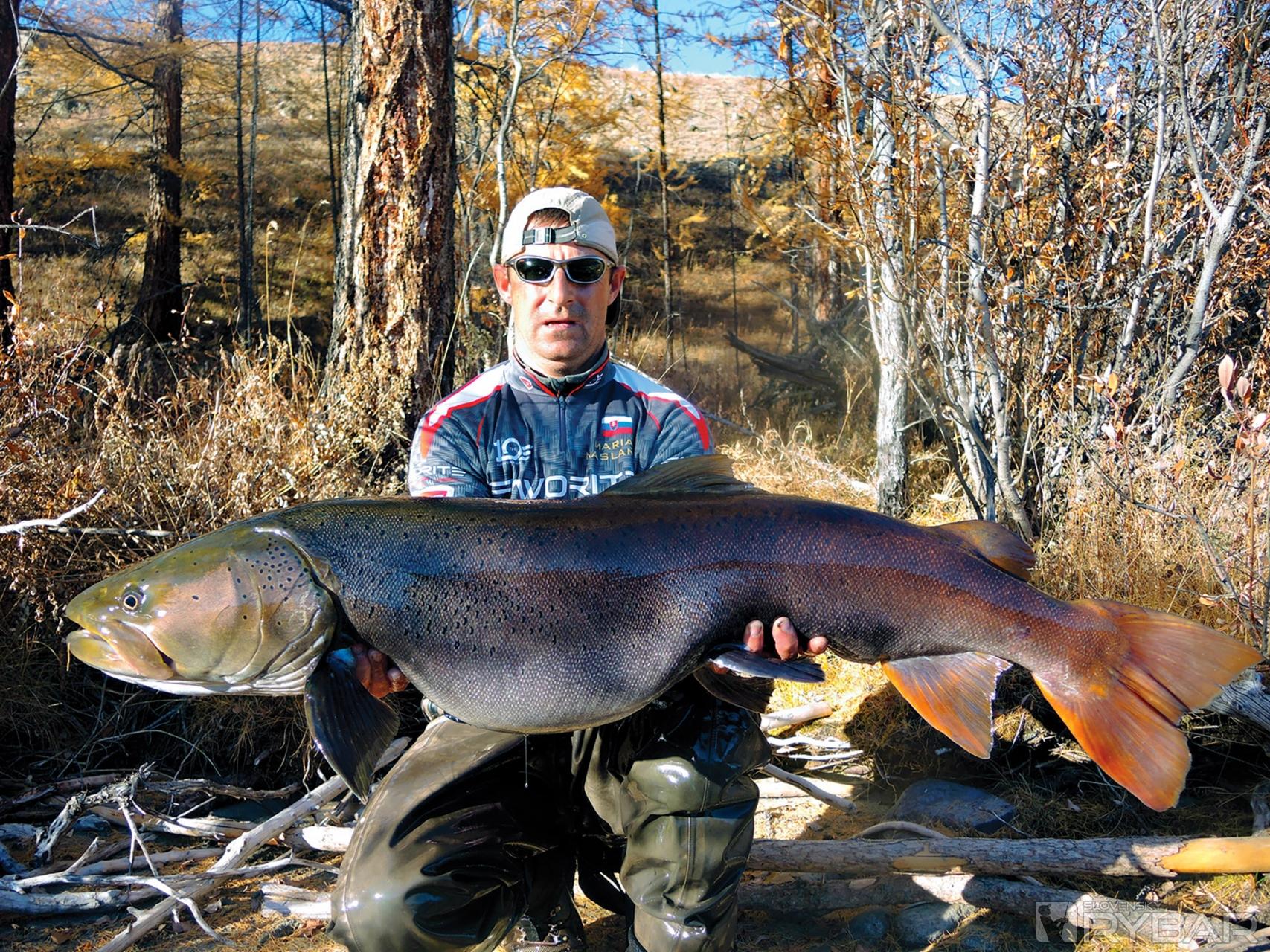 Celé doobedie o dušu prehadzujeme rozľahlé pláne pomaly plynúceho Šiškidu, ale naše voblery zostávajú bez povšimnutia. Postupne sa presúvame pod prítok zurčiaceho potoka. V poludňajšom slnku už z diaľky vidíme vo veľkom vracáku pod ústím potoka krúžkujúce lipne a lenoky. Berieme do rúk ľahšie prúty a na menšie 7-10 cm gumené rybky sa nám darí každému chytiť niekoľko krásnych lenokov až do 65 cm. Ivanovi zrazu spod prevísajúceho kríka vyrazí za 9 cm shadom tmavý tieň a bez kompromisov zaútočí na nástrahu. Nasleduje pár sekundový boj a Ivanovi praská 0,30 mm nadväzcový fluorokarbón.