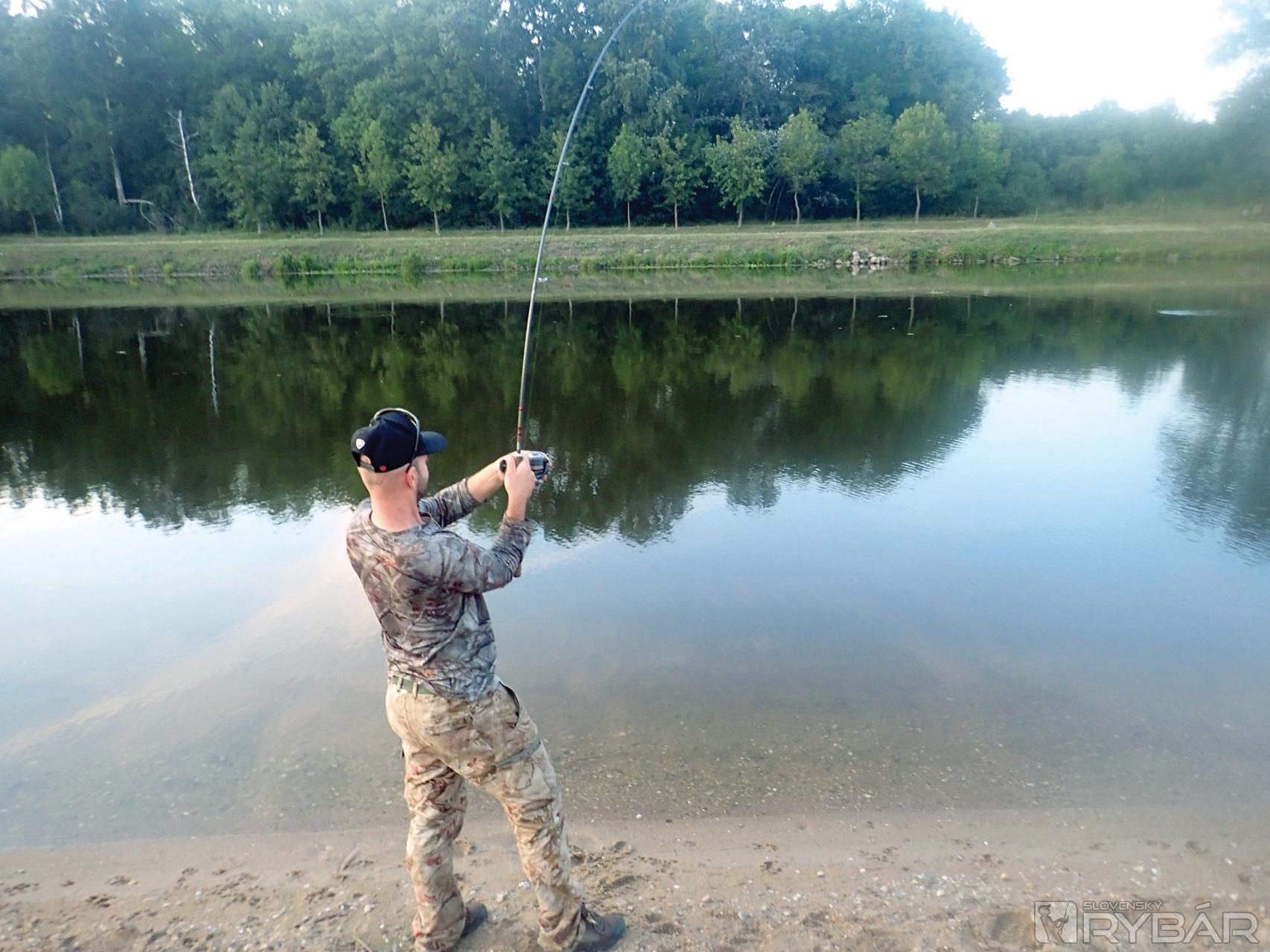 Vtom v prúte šklblo a prekážka sa pohla. Fíha, čo to?! Tak prisekávam ešte raz a adrenalín stúpa. Brzda navijaka dotiahnutá na krv. To nie je dobre, ale súboj s neznámym predátorom začal a nie je čas niečo vymýšľať. Prút ohnutý na max. Dočerta, toto nebude len taká malá ryba… Začína mi búšiť srdce a kolená sa troška trasú. Len žiadnu paniku. Pokoj a rozvahu. Je to jediný záber za celý deň, tak to teraz nepokašľať. Brzda navijaka je pre predátora slabá a šnúra sa odvíja akoby tam ani žiadna brzda nebola. Ryba sa nedá zastaviť. Už začínam byť nervózny, lebo sa dostáva do miest, kde je veľa prekážok a kameňov. Nemám na výber. Pridržiavam cievku a s rozbúšeným srdcom čakám, či šnúra zvládne ten odpor alebo nie. Super! Rybu sa mi podarilo zastaviť a pomaly ju skúšam pritiahnuť k sebe. Nekladie žiadny odpor. Akoby sa zmierila s tým, že prehrala.