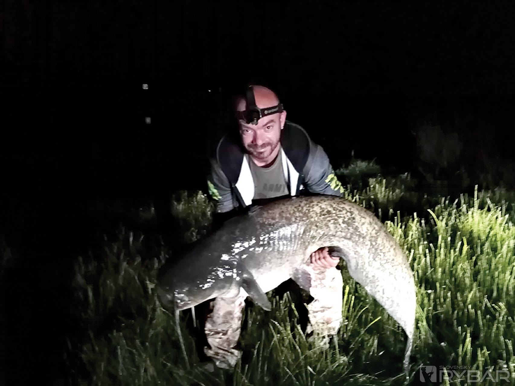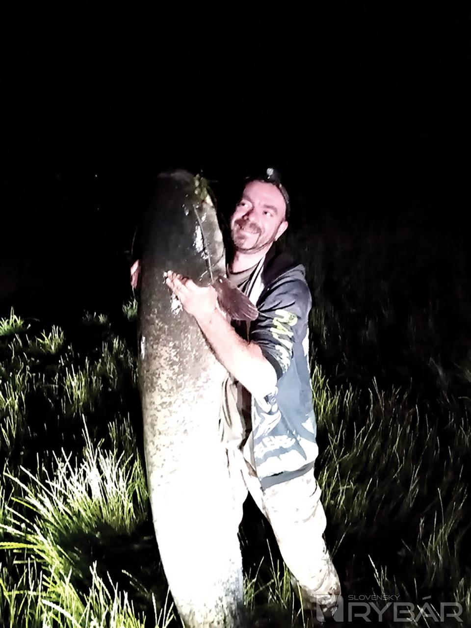 Skúšam to znova. Pritiahnem ho a opäť sa pokúšam uchytiť ho. Druhý výpad… Ryba bojuje už z posledných síl. Priťahujem ho znova k sebe, ale teraz to už nie je taký odpor ako po celý čas. Mááám ho! Zakričím z plného hrdla a celý šťastný si sadám k nemu do vody. Neskutočné! Vytiahol som ho z vody a hneď som hľadal, kde mám meter. Položím rybu na mokrú trávu a pokúšam sa ju zmerať. Je mi jasné, že klasický meter mi tu nepomôže. Mám so sebou ešte jeden, nuž ho prikladám k rybe a neveriaco krútim hlavou. Sumec na prívlač z brehu na 0,10 mm šnúru mal 177 cm!