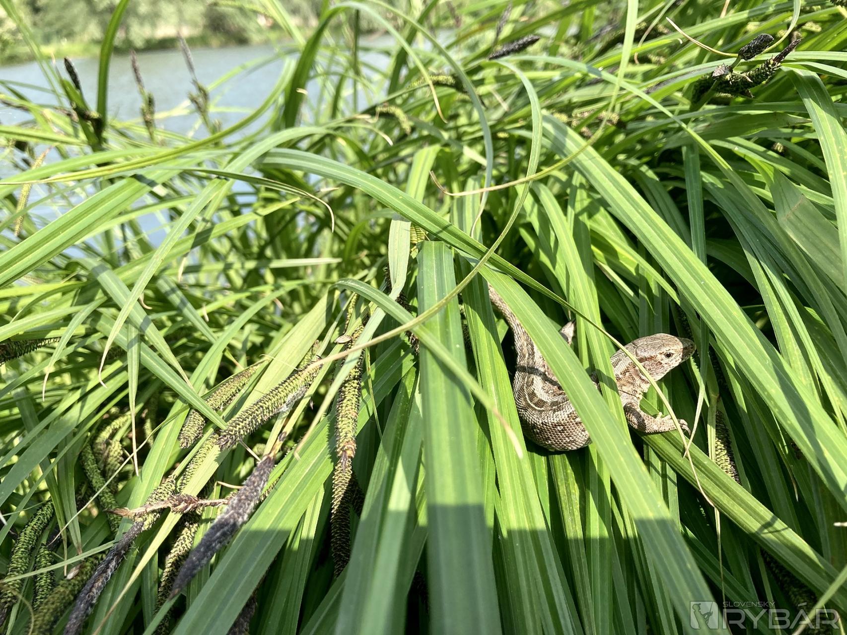 6 – 8 m. Čakal som veľmi skoro záber. Nestalo sa. Vedľa na trsoch ostrice sa na mňa škerila jašterica dobíjajúca si baterky, skokany vo vode vrieskali a radovali sa z krásneho dňa. Naokolo preletovali ako bláznivé holuby hrivnáky a dokonca vážky zneužili môj prút na krátku intímnu chvíľku. Akože fajn, zver moja, no ja som prišiel na ryby a chcem zábery, a to hneď!