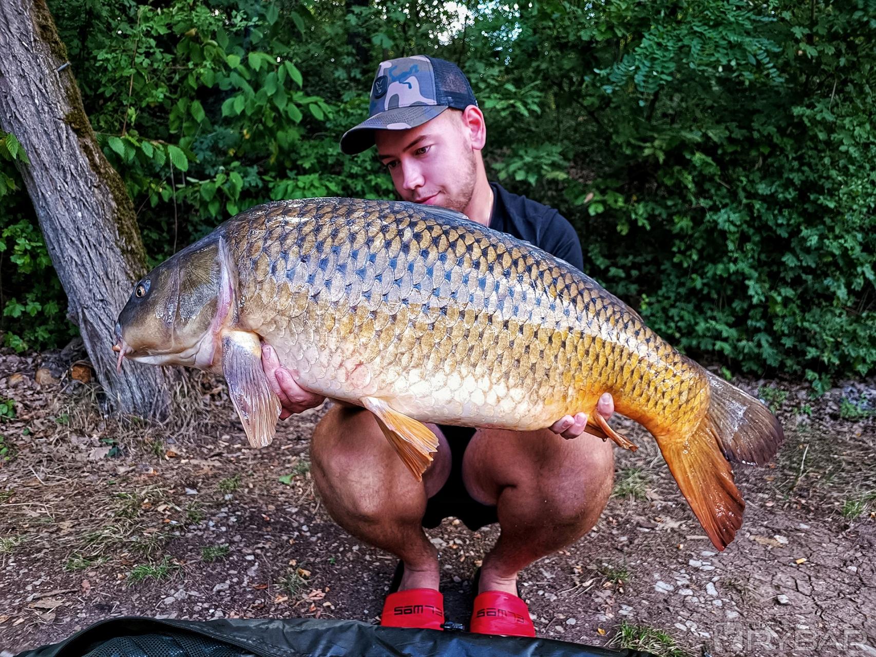 Poobede som len tak sedel a pozeral sa na hladinu, keď sa zrazu nad lovným miestom prevalila pekná rybka a o pár minút neskôr prišiel padáčik na pravý prút. Keď som zdvihol prút, kaprík zistil, že niečo nie je v poriadku a začal sa boj o každý centimeter. Nechcel sa vzdať ani za svet. Prešlo asi 30 minút a stále sa mi nechcel ukázať. Celkovo 45-minútový súboj stál za to – bolo to 15 kg čistej hmotnosti a zdravý, pekne stavaný šupík. Nasledovalo zopár foto a môžeme ho pustiť naspäť do jeho domova, predsa len bolo príliš teplo a nechcel som ho vonku dlho trápiť.