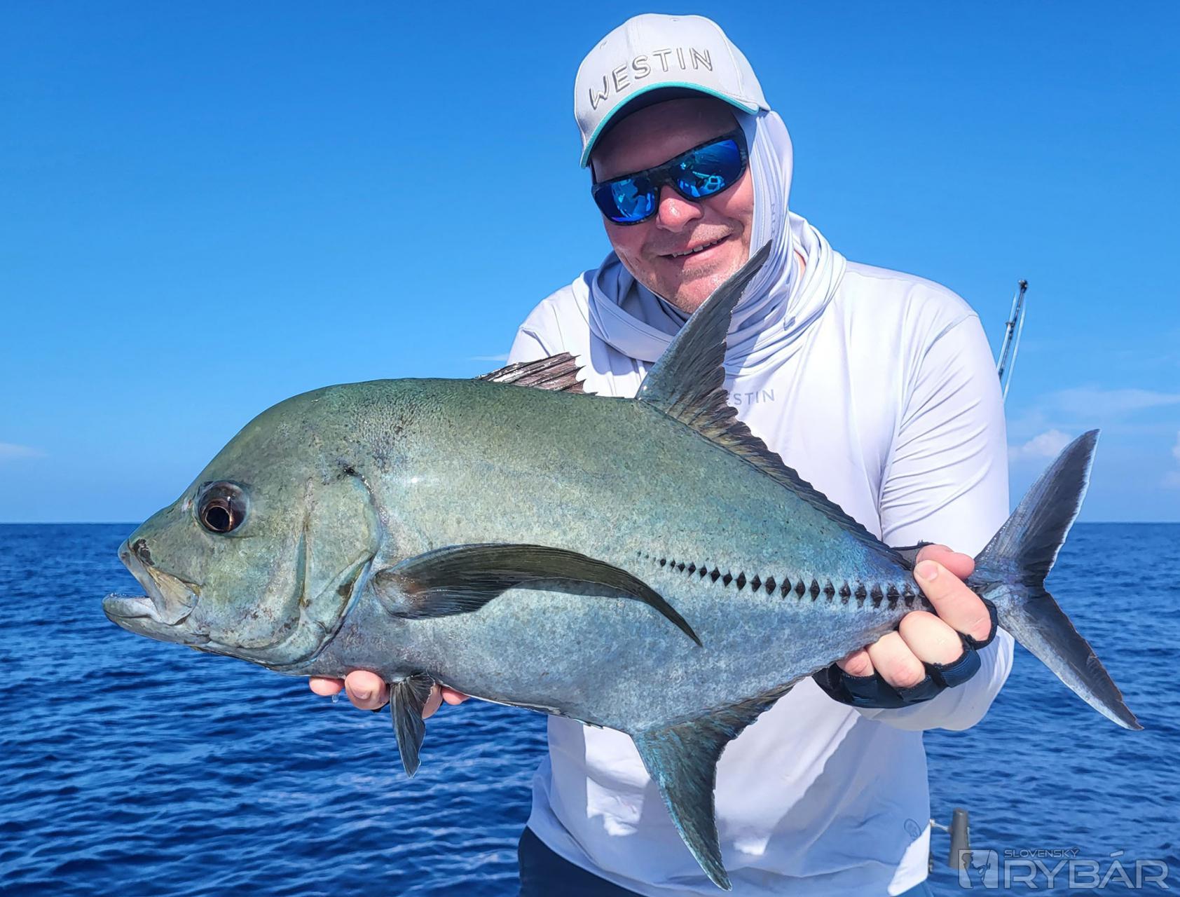 O pár kilometrov na hrane ďalej prišli tie najcennejšie úlovky, aké tu môžete na jigging chytiť – rôzne druhy kranasov (vrátane amberjackov), kanicov (grouper), chňapalov. Stáli sme uprostred Indického oceána. Slnko pálilo takým spôsobom, že to, čo sme nemali namazané alebo prikryté oblečením UPF (UV ochrana – pozn. red.), bolo okamžite spálené. Nebolo sa kam schovať. Prvýkrát som zažíval intenzitu rovníkového svetla, v ktorom sa bez polarizačných okuliarov nedalo byť. A do toho vlny! Boli sme úplne fyzicky vyčerpaní zo speed jiggingu pri teplotách nad 30 °C s vysokou vlhkosťou vzduchu. Speed jigging si predstavte asi ako keď musíte neustále vyťahovať zo 100 m hĺbky 5 kg činku a do toho sekať a šklbať prútom. To všetko musíte robiť najrýchlejšie ako dokážete, aby sa vám nástraha čo najlepšie hýbala a nezožrali vám ju žraloky. Lenže takto nejako vyzerá rybársky raj...