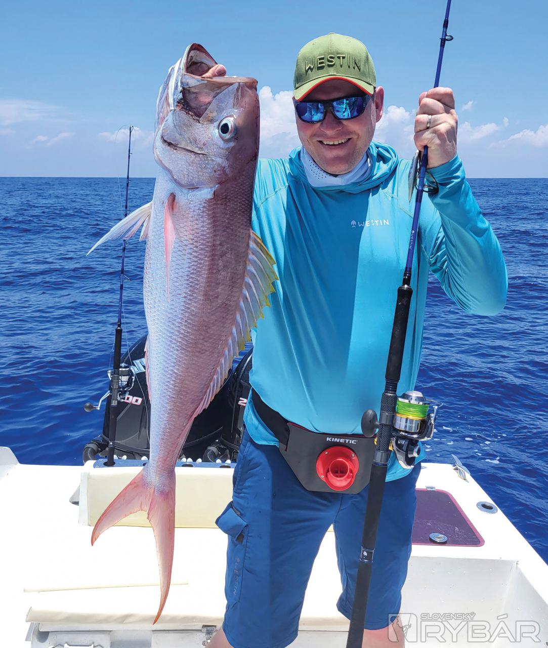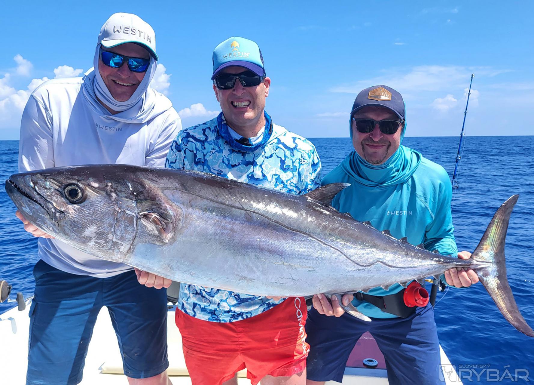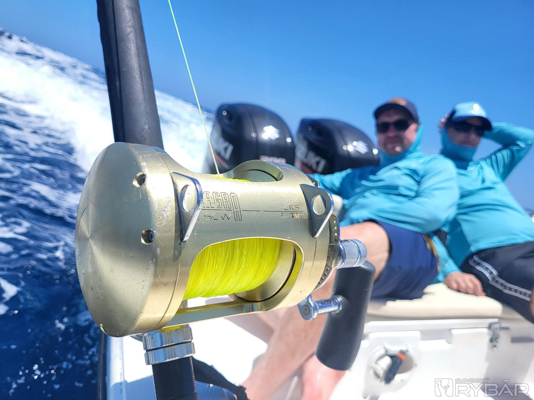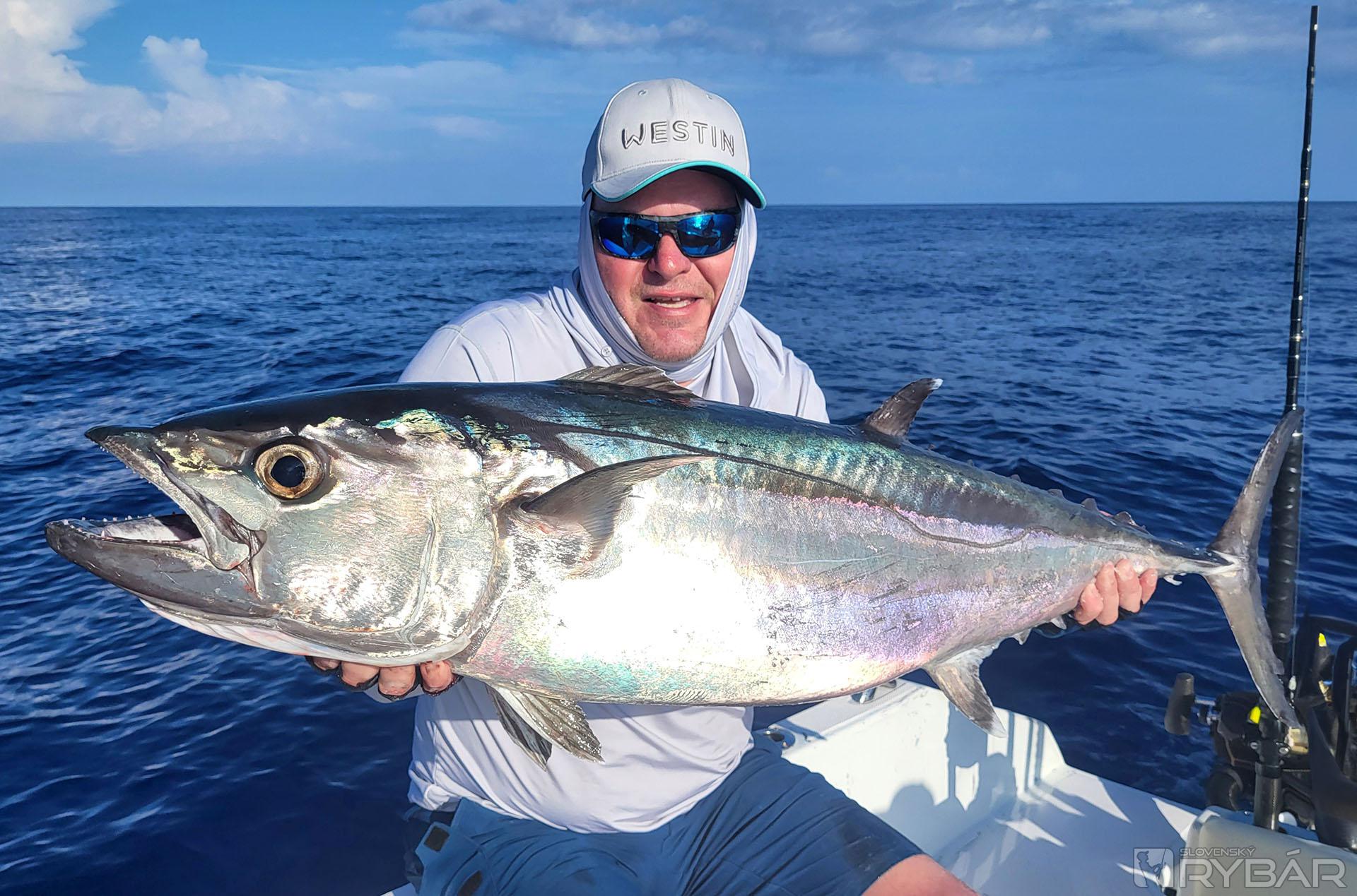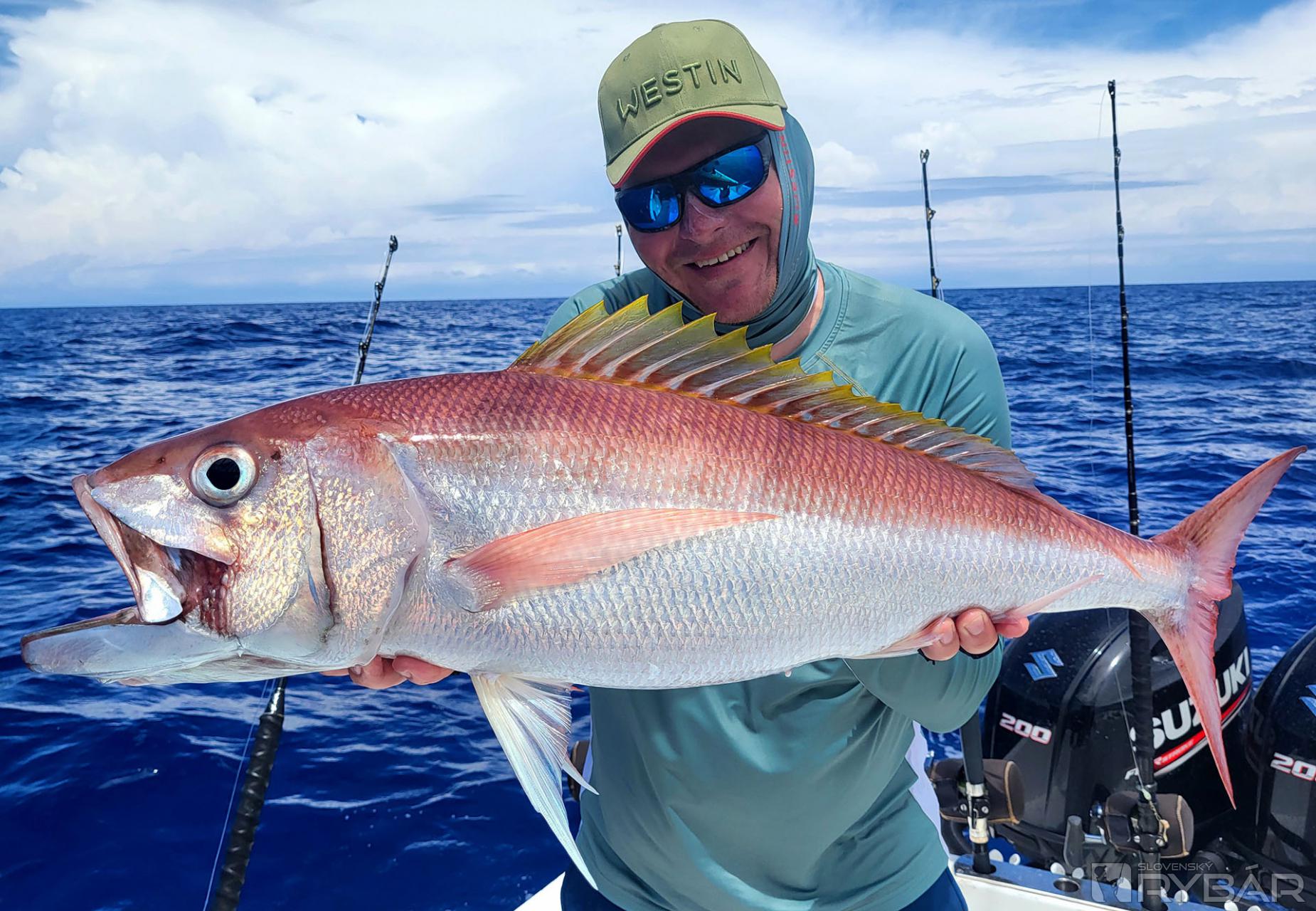 Keď začnete deň úlovkom približne 40 kg a 20 kg „doggieho“ na umelú nástrahu a nadviažete na to úlovkami 15+ kg amberjackov, nemôže byť deň zlý. Presne to sa nám pri prvých driftoch nášho tretieho dňa rybolovu podarilo. Užívali sme si tak vrcholné momenty tejto výpravy a najlepší deň, aký som kedy na teplom mori zažil. Nechýbali ďalšie chytené makrely jednofarebné, kranasy, kanice a ďalšie ryby. Majstrovský kúsok predvádza Honzo, keď zrazu vykríkne „Mahi-mahi!“ Rybu zazrel blysnúť sa vo vlne. Odhadzuje jiggingový prút, berie pripravený Westin W6 Popping so špeciálnym voblerom na „doráda“ a nahadzuje úplne iným smerom, ako rybu videl. Tá by sa totiž nahodením priamo na ňu vyplašila, ale týmto spôsobom na nástrahu útočí. A Honzo tak túto prekrásnu mahi-mahi zdoláva.