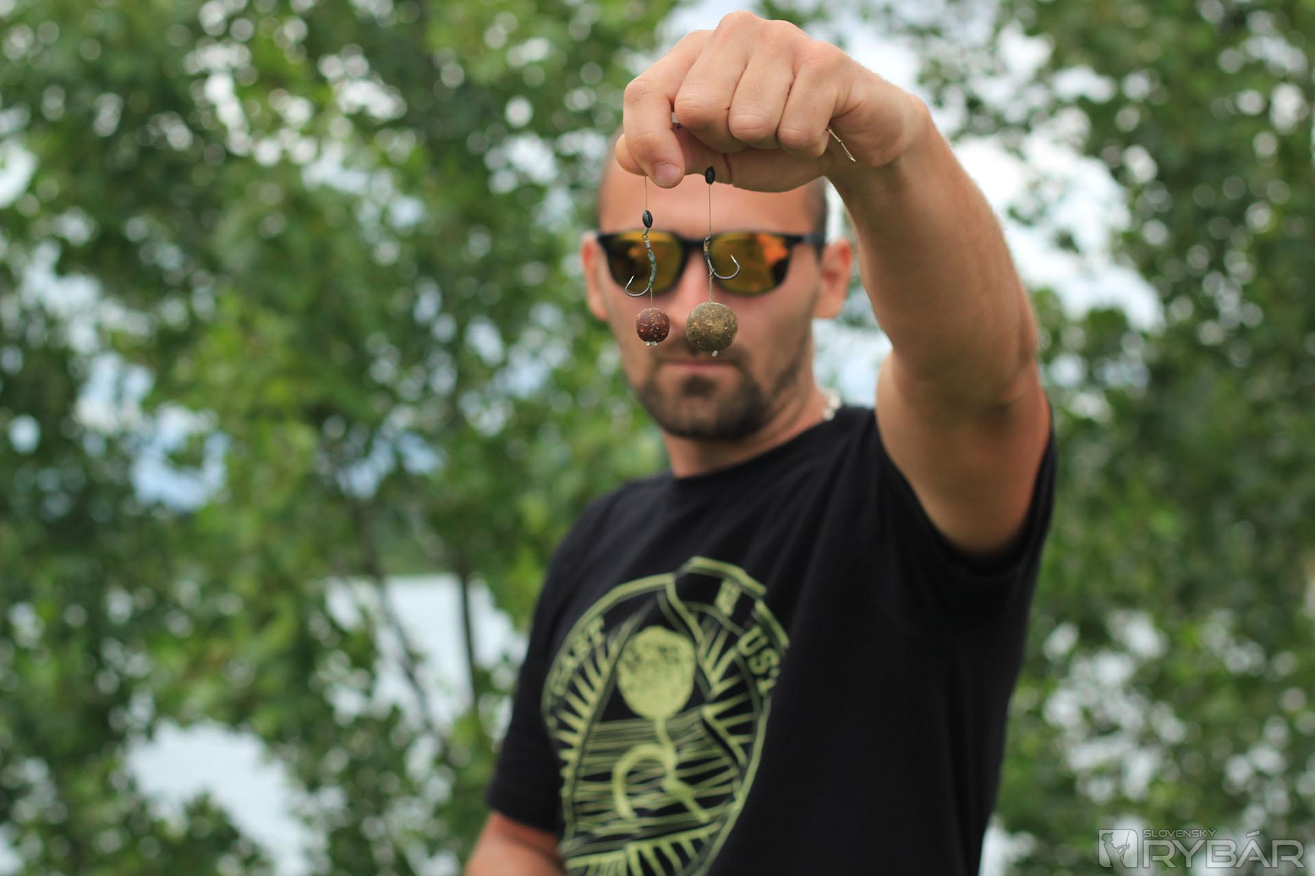 Používam dipované boilies a taktiež popky rád zvýrazňujem esenciou, aby boli čo najatraktívnejšie. Ak je aktivita rýb slabá, používam chytľavejšie montáže s menšími priemermi boilies okolo 14 – 16 mm alebo len samotnú plávajúcu guľôčku. V takejto situácii siahnem po Ronnie Rigu alebo po Kubovom obľúbenom Hybrid Rigu. V prípade, že je aktivita vyššia, zväčšujem priemery guliek a našívam ich na jednoduchú montáž s krúžkom a obľúbeným háčikom Mugga. Pri použití PVA vreciek robím kratšie nadväzce, inak pokojne nechávam aj dlhšie.
