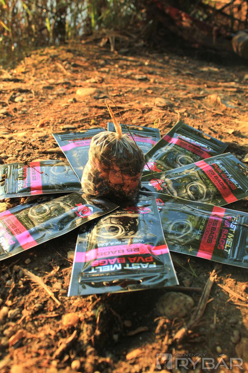 Veľmi rád používam PVA materiály pri krátkodobom love, dokážem s nimi zaujať nejedného kapra a niekedy ho doslova vyprovokovať k záberu. Opíšem vám, ako využívam už spomínané PVA-čka. Ak sa rozhodnem pre vrecko, tak dávam krátke nadväzce, aby som ich mohol aj s olovom schovať do vrecka. Plniť ho zvyknem cca 4 až 6-milimetrovými peletkami, prípadne pridám aj drvené boilies. Dá sa plniť aj väčšími priemermi, ale s menšími sa mi lepšie pracuje. Veľkosť vrecka prispôsobujem vzdialenosti, v akej budem loviť. Na zatraktívnenie používam rôzne dipy, boostre alebo napríklad Korda Goo s fluo efektom.