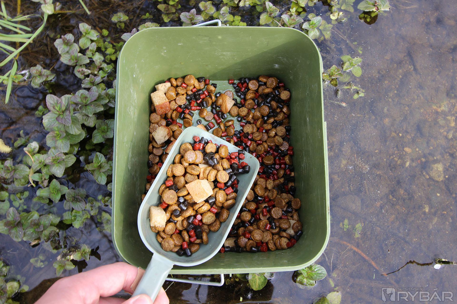 Ako základnú dávku kŕmenia vystrelím prakom (aj na krátke vzdialenosti používam prak, pretože švih paže pri hode môže byť niekedy kontraproduktívny) 20 až 30 vnadiacich častíc medzi ryby, ktoré sa slnia a potom medzi voľné návnady nahodím nástrahu. Sú však situácie, že sa veľké ryby poplašia, keď pokryjete hladinu príliš veľkým množstvom plávajúcich kúskov. Občas sa dokonca oplatí loviť iba na jednu single nástrahu (bez akýchkoľvek plávajúcich návnad).