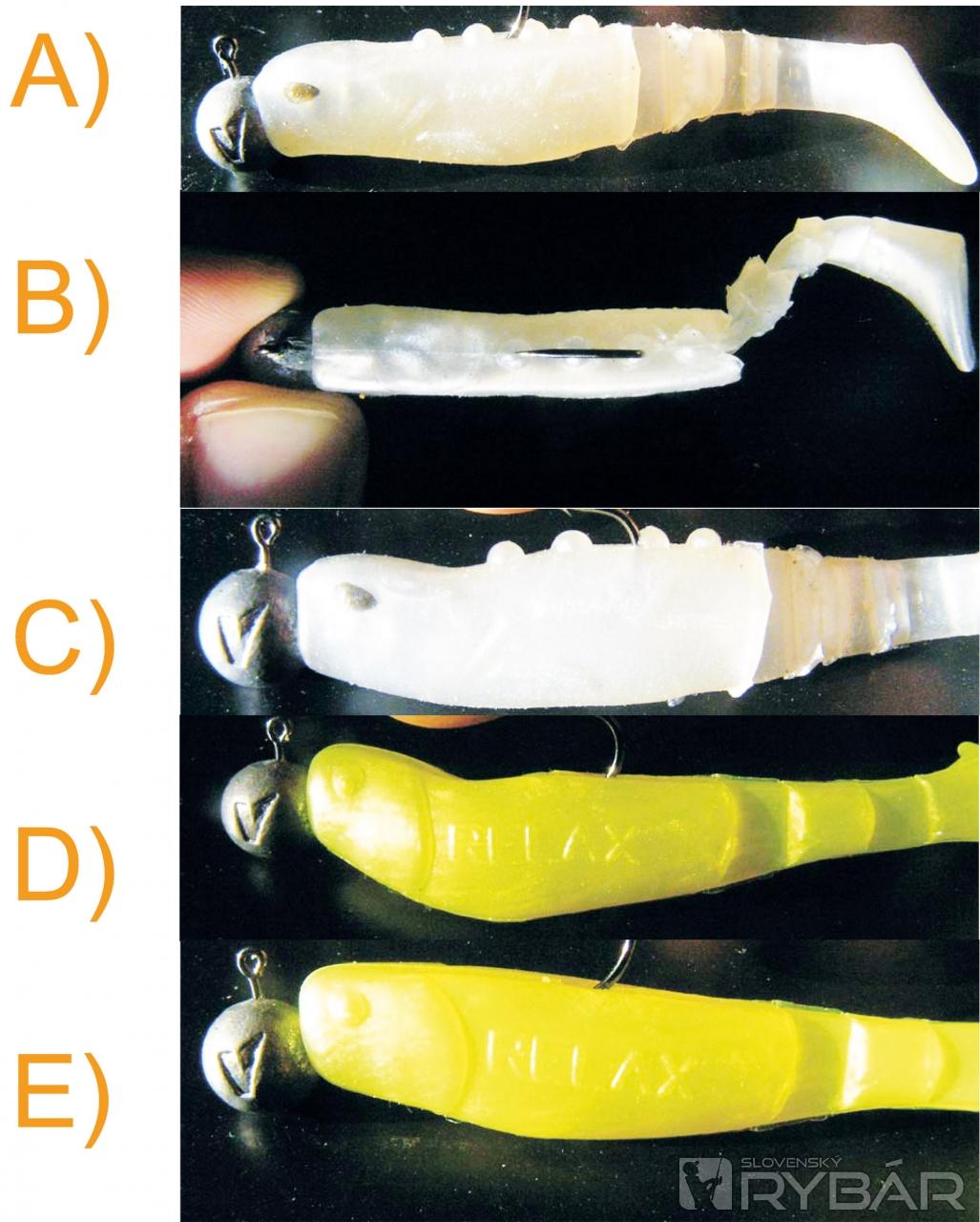 E) Ramienko jiga nie je v rovine (v osi) s telíčkom ripera. Aj zle položené ťažisko nám môže obmedzovať nástrahu v pohybe a nástraha pôsobí neprirodzene.