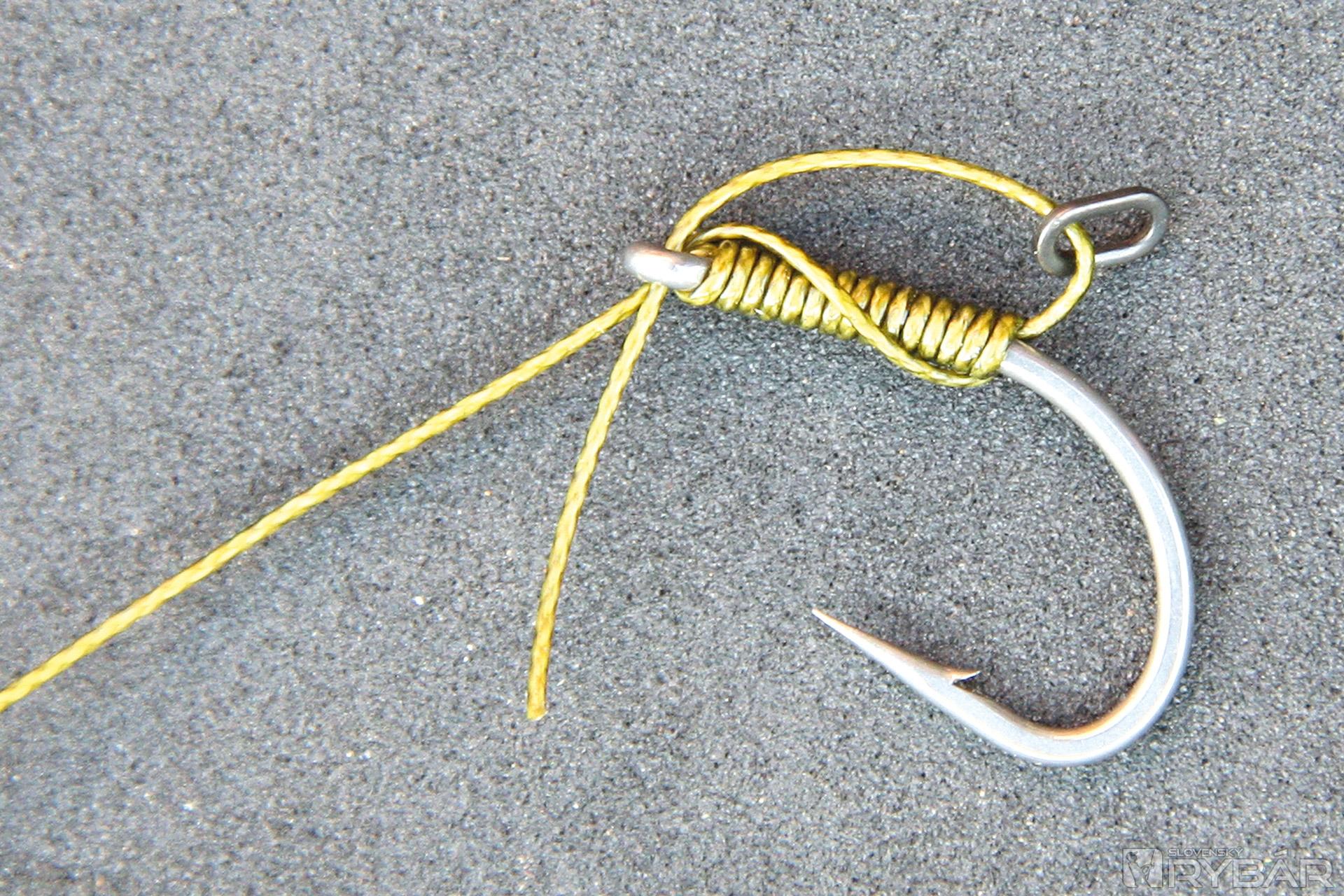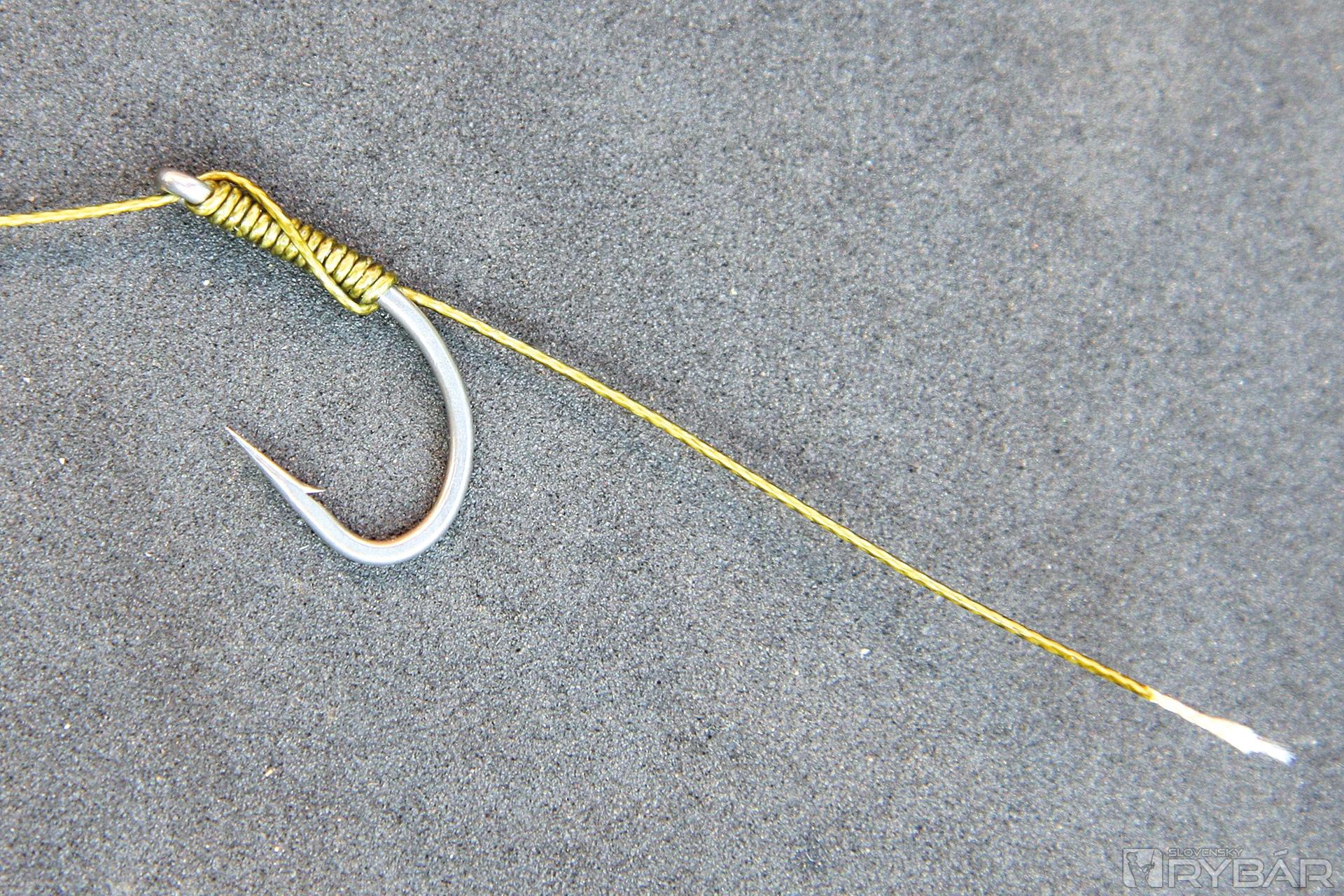 12 Nad očkom háčika stiahneme 1 cm stuženej vrstvy spletanej šnúry Invader kvôli voľnejšiemu pohybu nástrahy s háčikom.