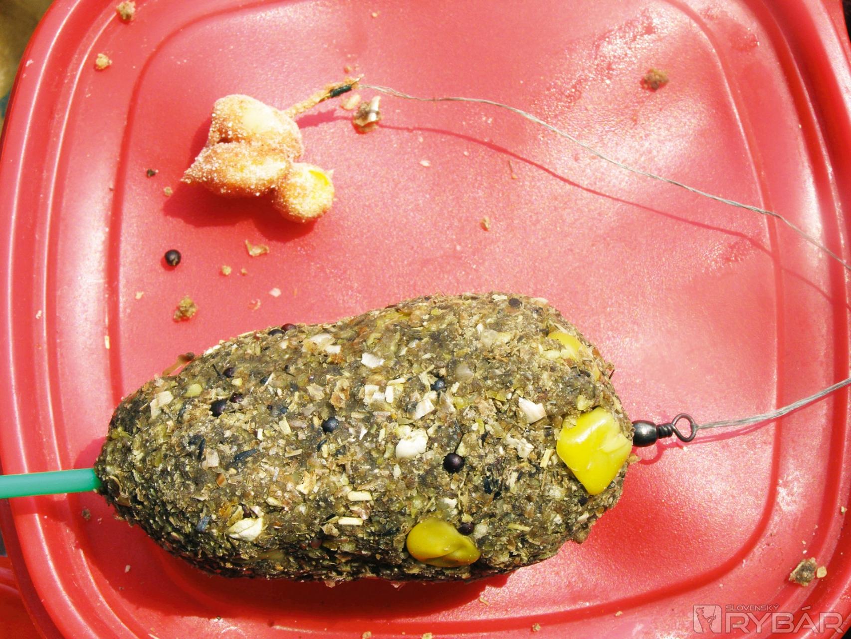 Bolo už cez 10 hodín dopoludnia, kým som sa dostal k vode. Tam som si vybral miesto, vybalil sa a rozložil vercajg. Niekedy si zvyknem pripraviť a namiešať vlastnú kŕmnu zmes, ale nemal som nič pripravené, a tak som otvoril jedno kilové balenie lacnejšieho vanilkového Akvamixu-A, pridal k nemu tekutý vanilkový aktivátor rozriedený s vodou. Rozmiešal som to a pridal ešte trochu konopnej múčky, halibut múčky, konzervovanej rezanej sladkej kukuričky z jednej celej plechovky, za hrsť peliet, a pretože zmes sa silne rozpadala, tak aj trošku klasickej strúhanky. Predpokladal som, že na jedno nahodenie mi má vydržať nástraha a vnadiaca zmes asi 30 minút.
