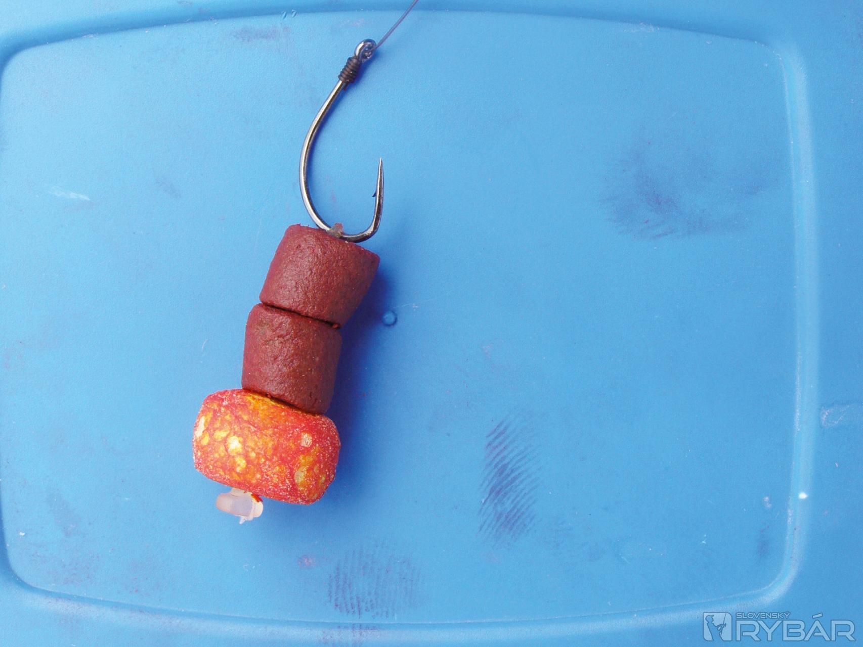 Po krátkom zakŕmení nastala tá správna chvíľa, keď som musel rozhodnúť, čo nastražím na háčik. Na feedrovú udicu som si najprv zvolil konzervovanú kukuričku v kombinácii s malou žltou pufinou, na druhú udicu zase dve červené 8 mm pelety s dierou, a k tomu ešte jednu veľkú červenú pufinu na odľahčenie a nadvihnutie nástrahy odo dna. Na začiatok som si na kukuričku nakvapkal aj zopár kvapiek medovej arómy. Prvé nahodenia som mal za sebou, teraz už bolo potrebné iba trpezlivo čakať.